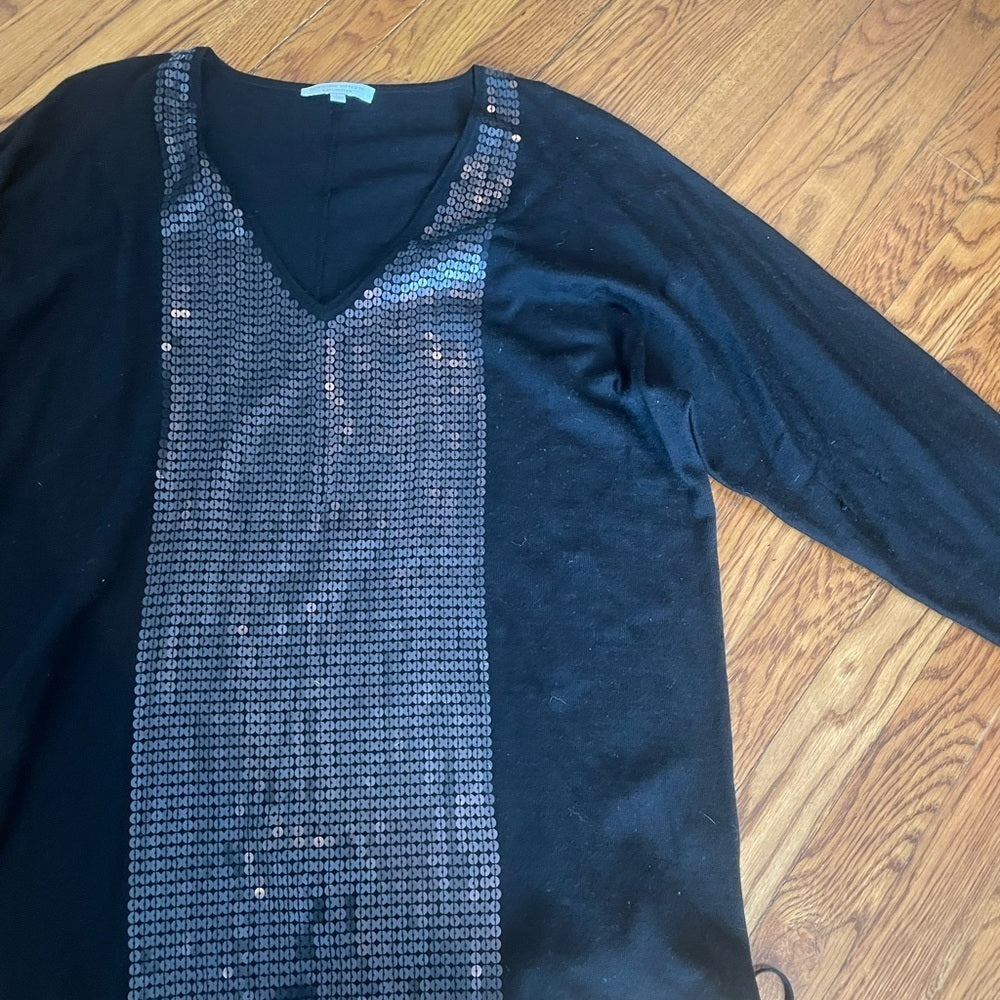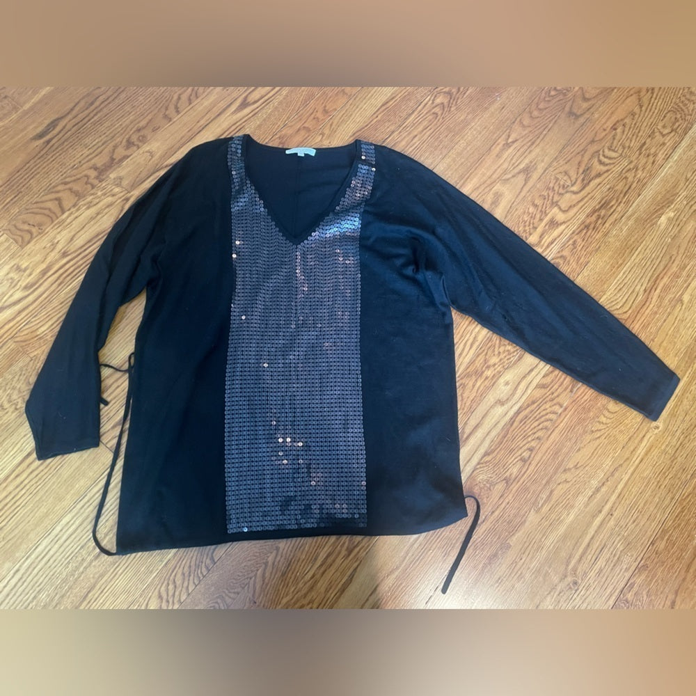 Adrienne Vittadini Black Seqin Long Sleeve Top Size Large