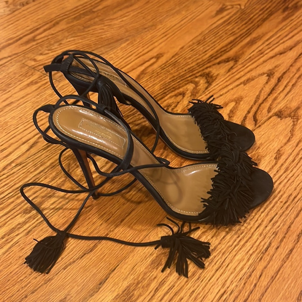 Aquazzura Woman’s Black Fringe Heels Size 40.5