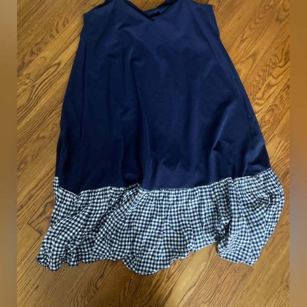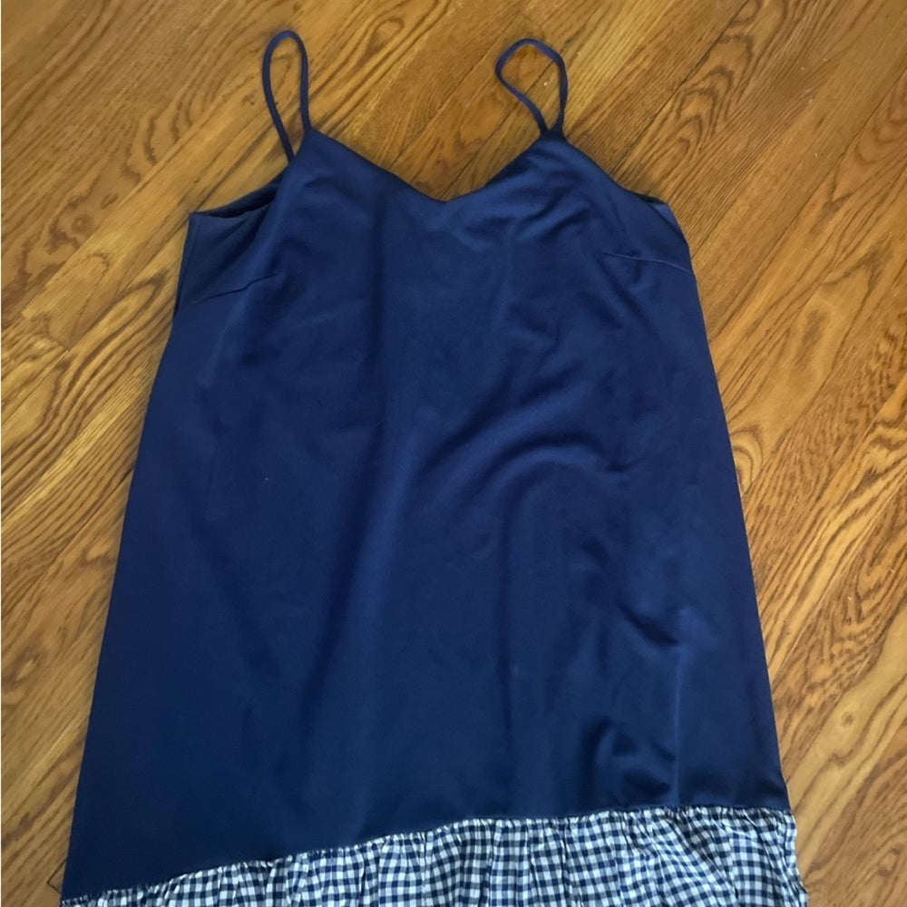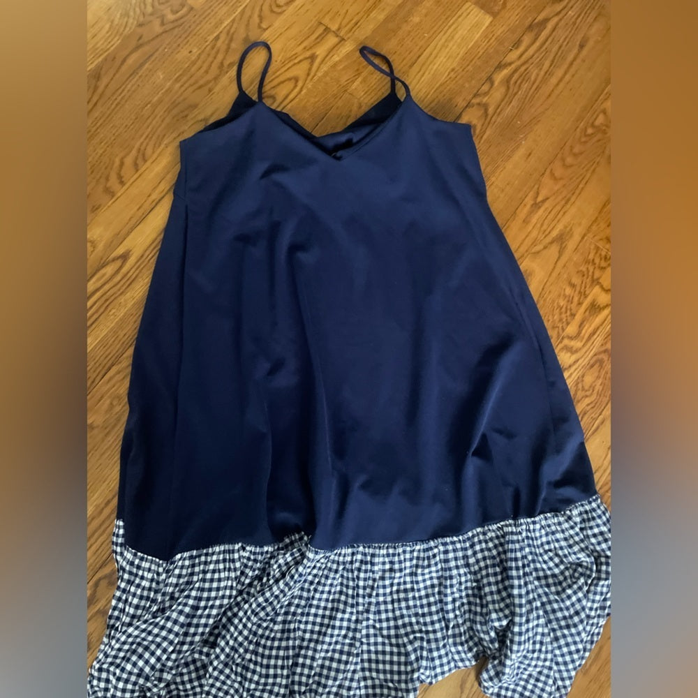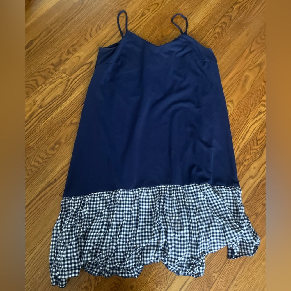 In amazing condition, spaghetti strap dress with patterned bottom.