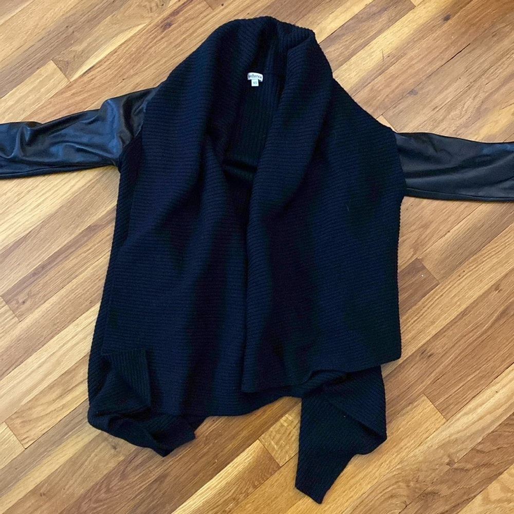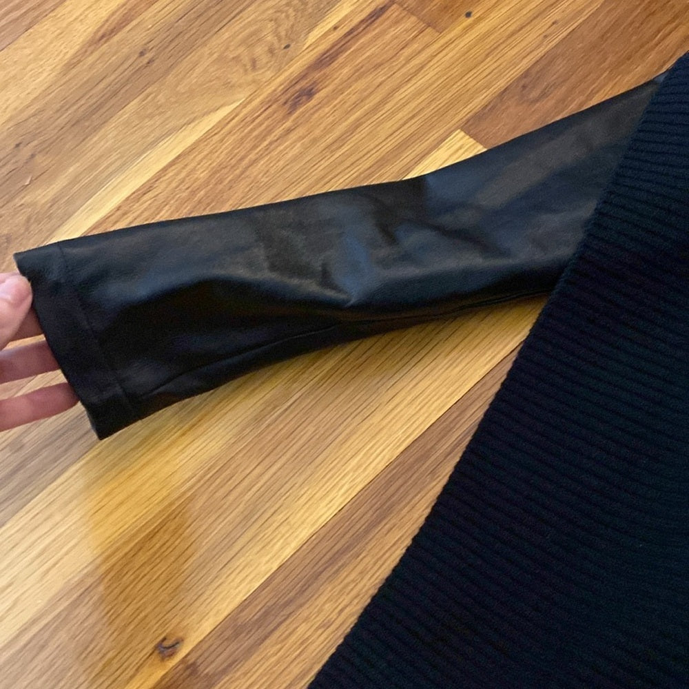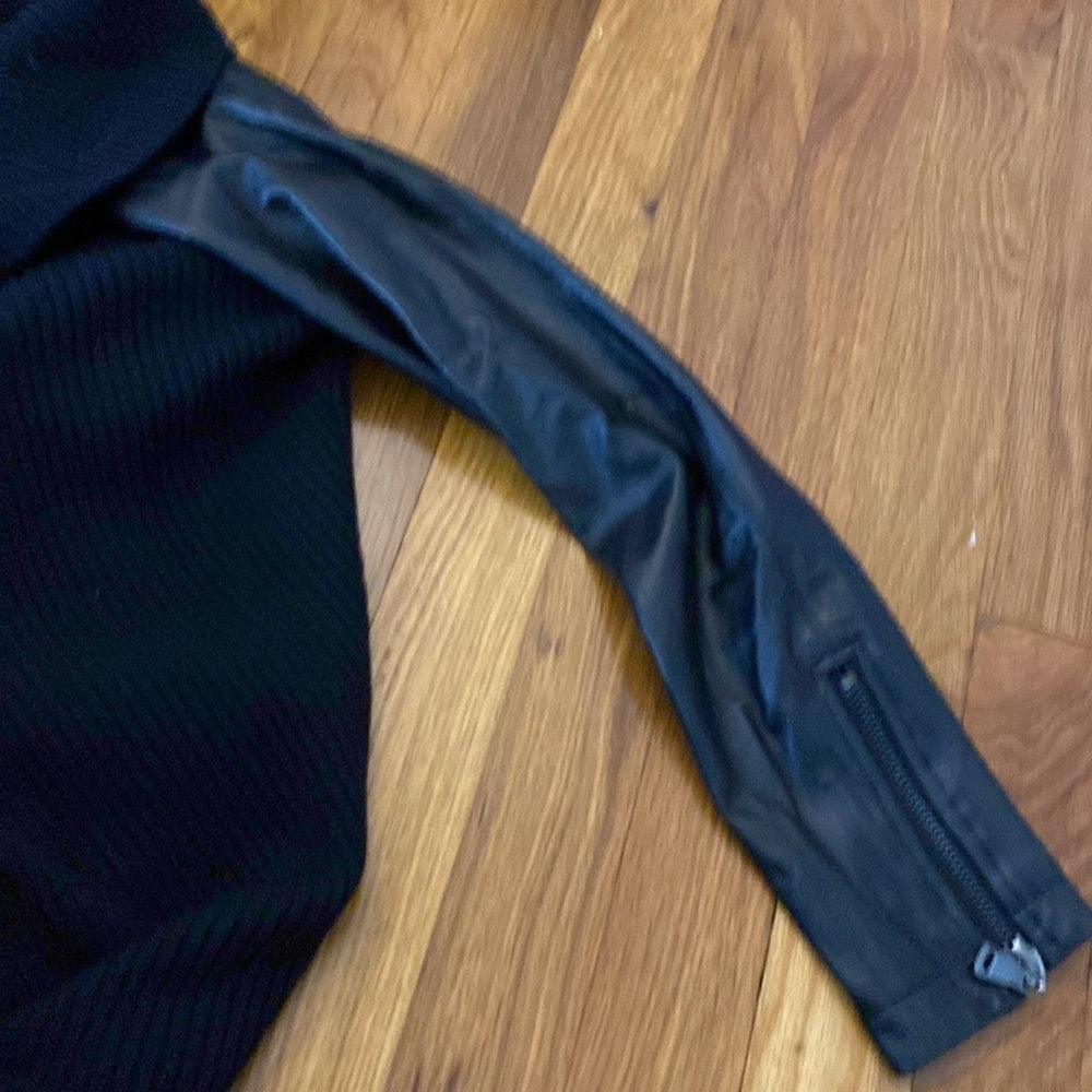 Bychance Women’s Black Wool Jacket With Leather Sleeves Size XS