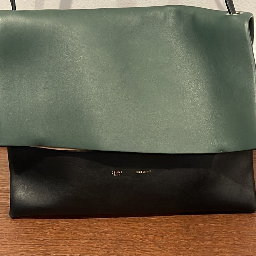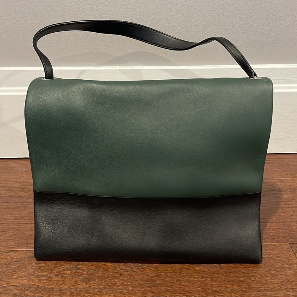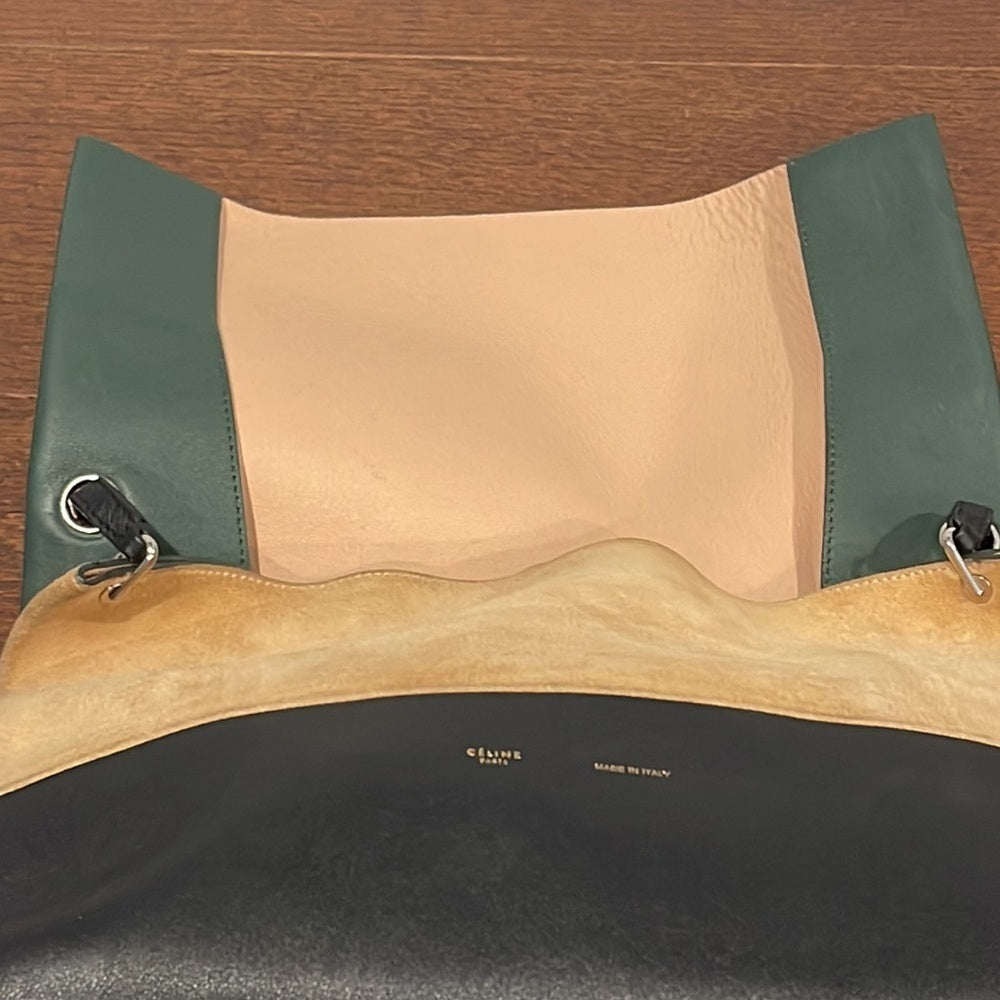 CELINE Women’s All Soft Green and Black Leather and Suede Shoulder Bag w/ Pouch