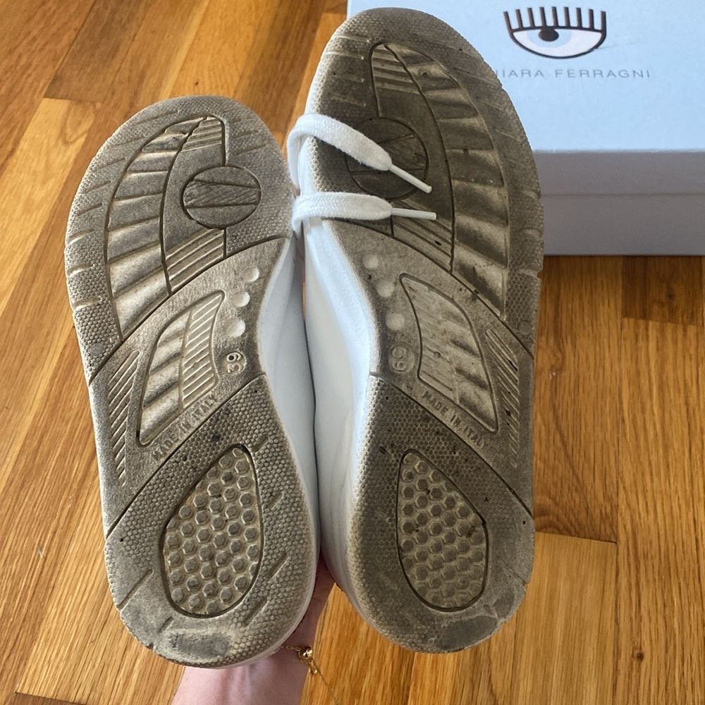 Chiara Ferragni Women’s White Sneakers With Pink Sequin Hearts Size 39