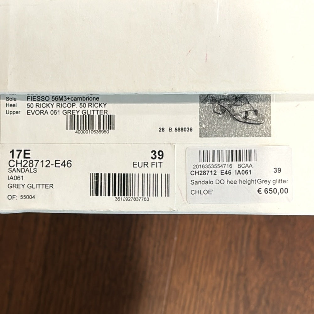 Chloe Women’s Grey Glitter Sandals Size 39/9