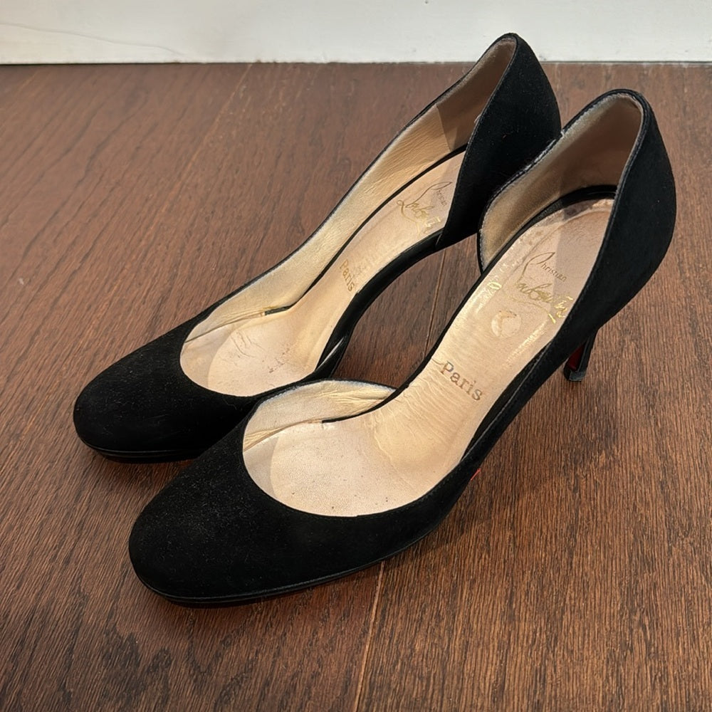 Christian Louboutin Women’s Black Suede Round Toe D’Orsay Pumps Size 40/10