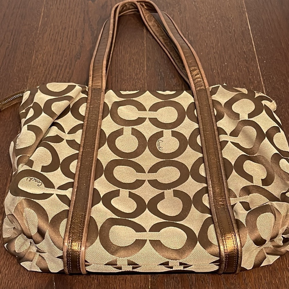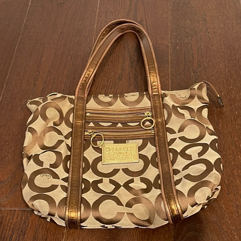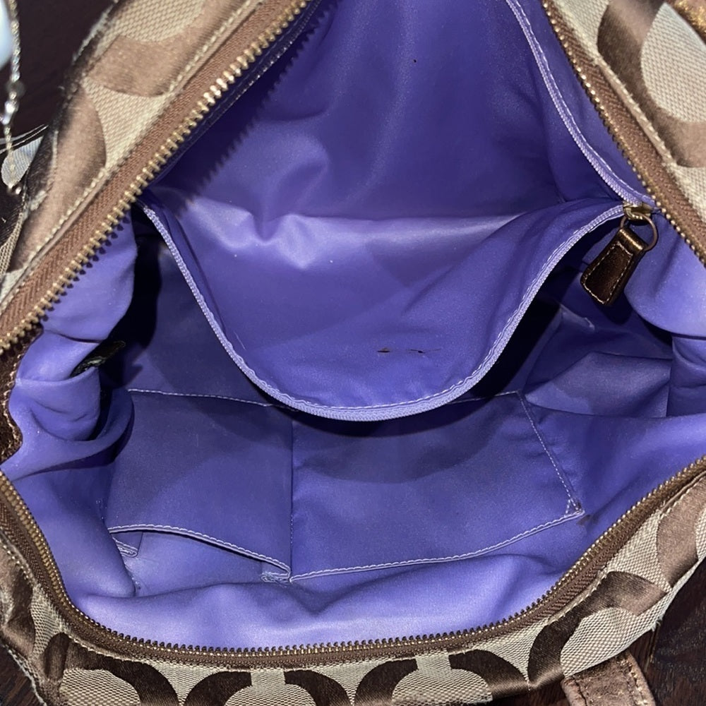 In good condition, a little wear and tear at the top of the bag by the zipper.