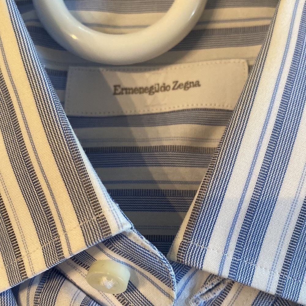 Ermenegildo Zegna 41/16 Blue and White Striped Button Down