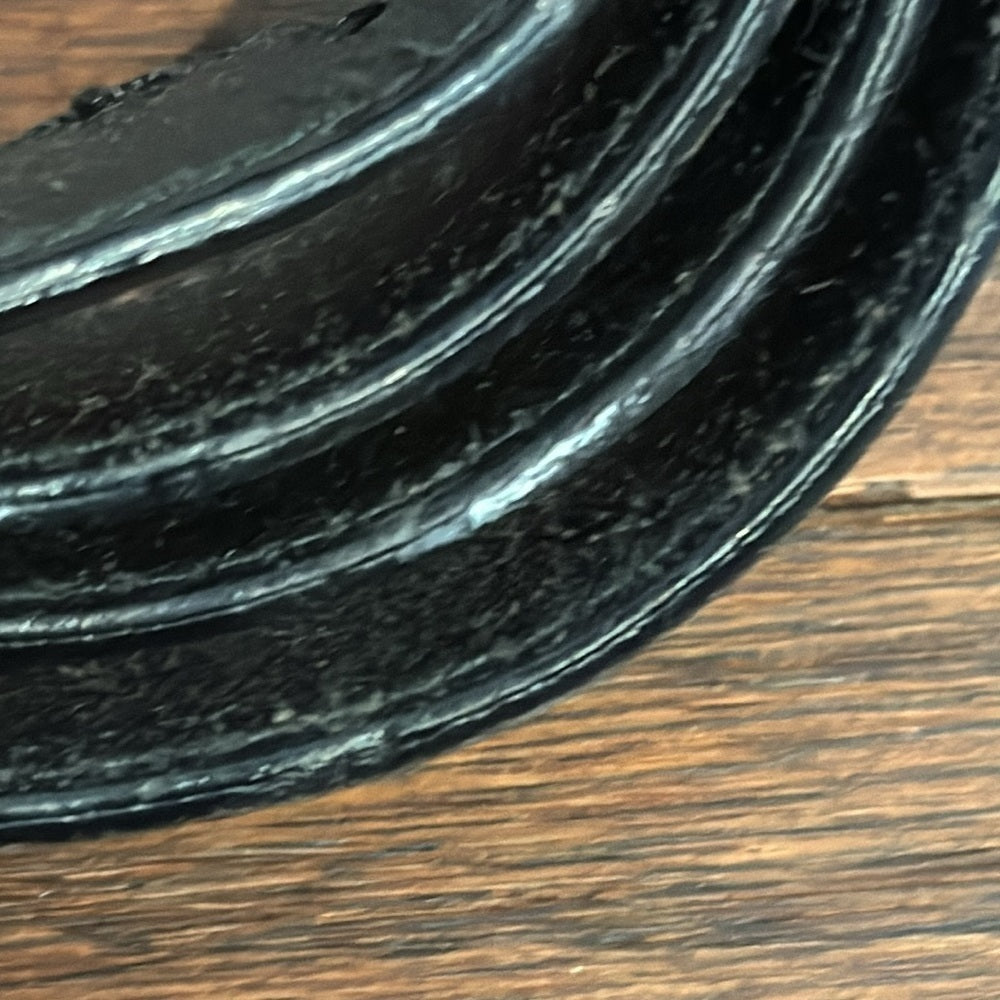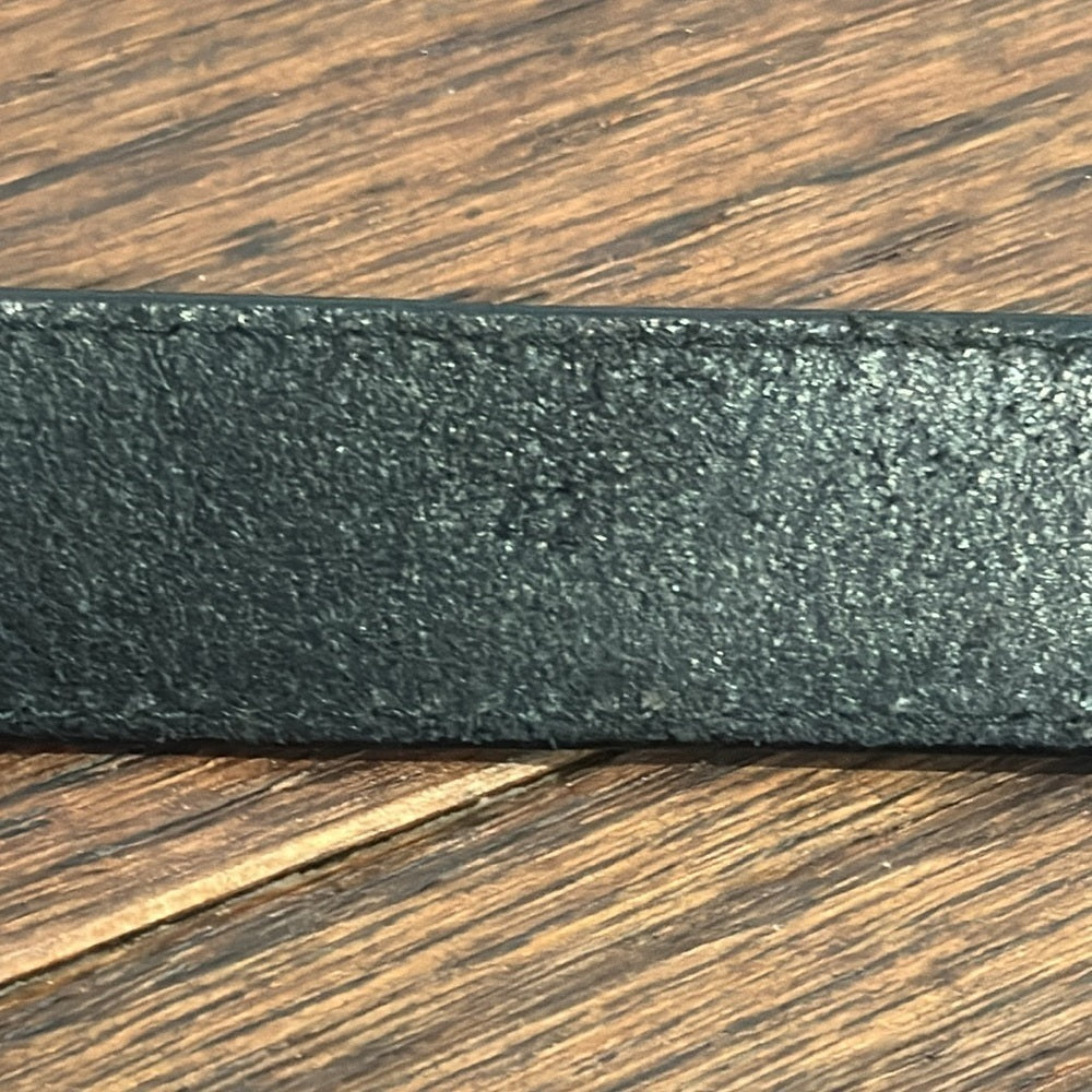 In good shape, some scratches on the leather as shown in pictures. Scratches on the buckle, but still in good condition.