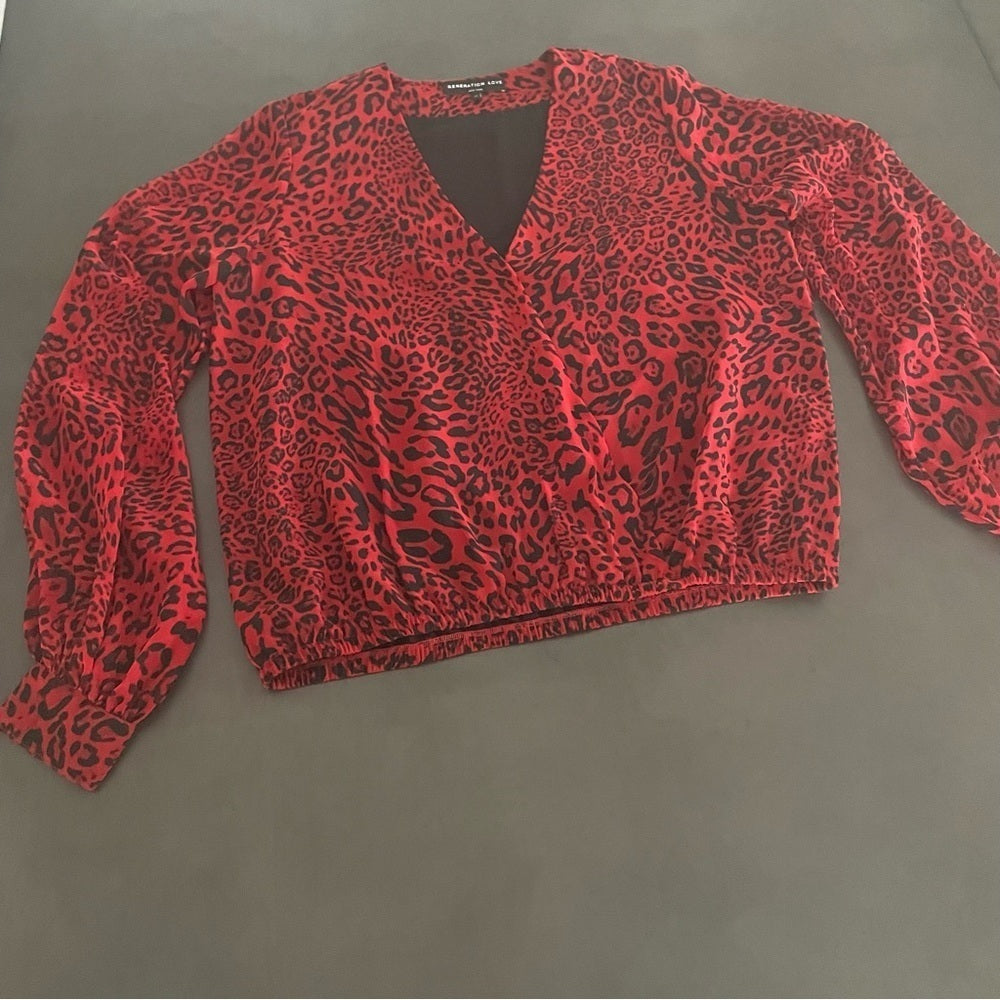Generation Love Red Leopard V-Neck Blouse Size Medium