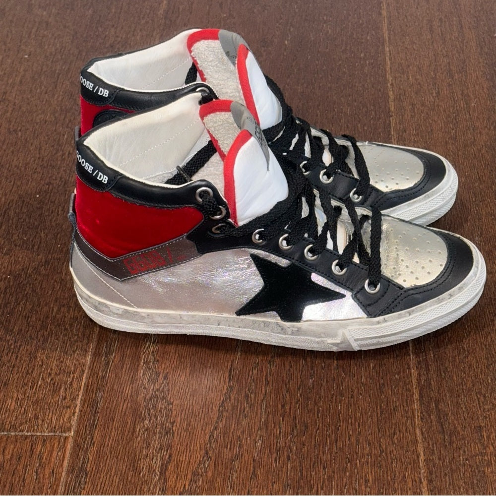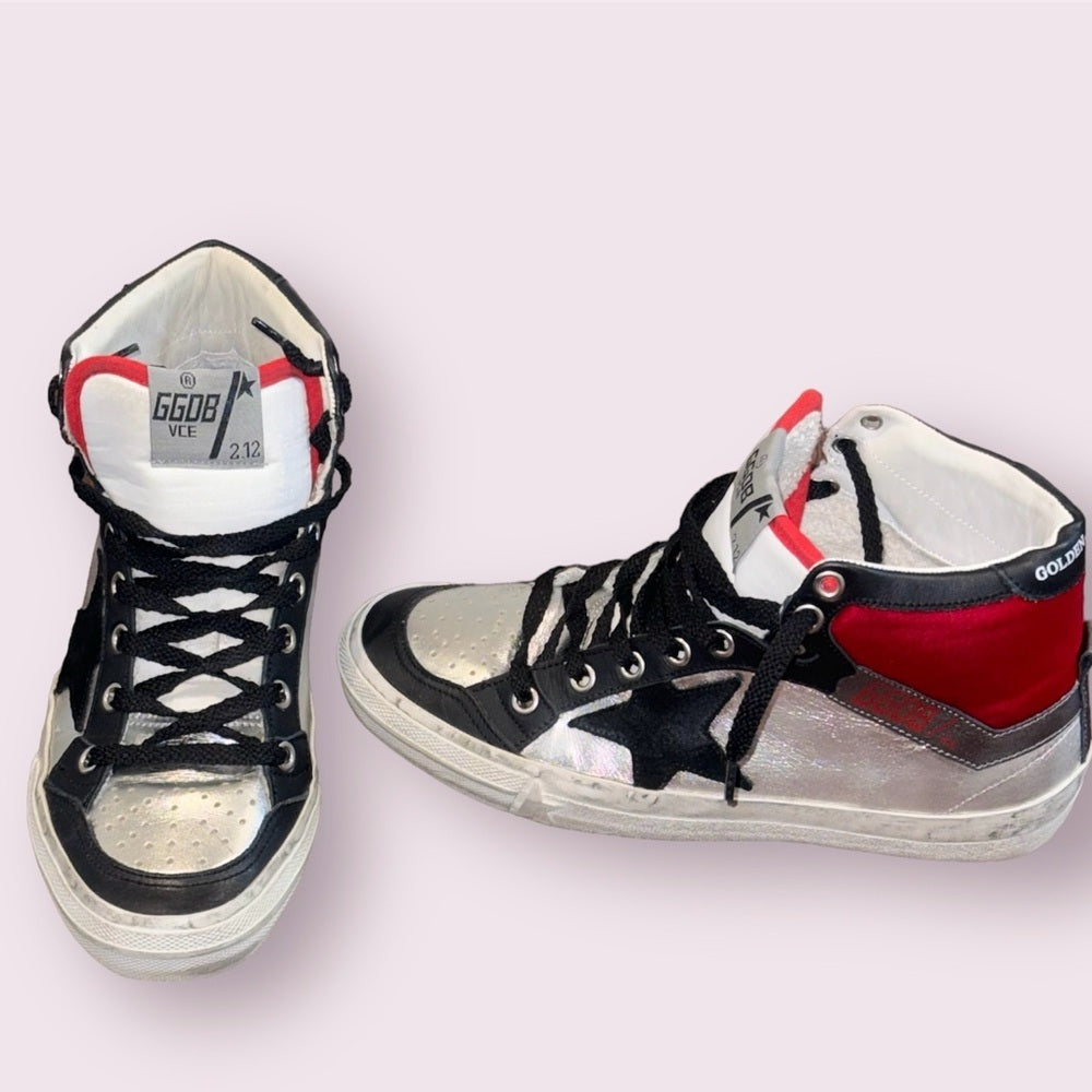 Golden Goose Women’s Red, Black and Silver High Top Sneakers Size 36/6