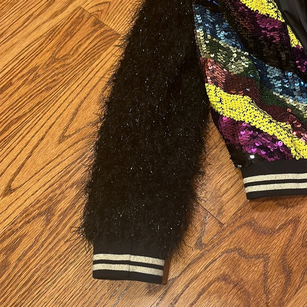 Hannah Banana Girl’s Sequin Jacket with Faux Fur Sleeves Size 14