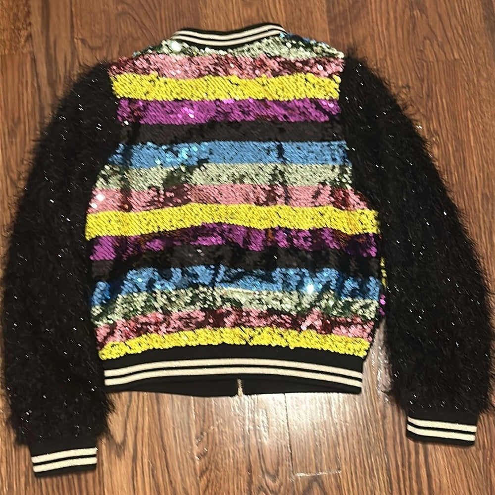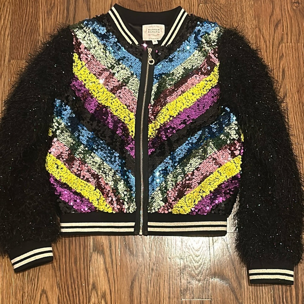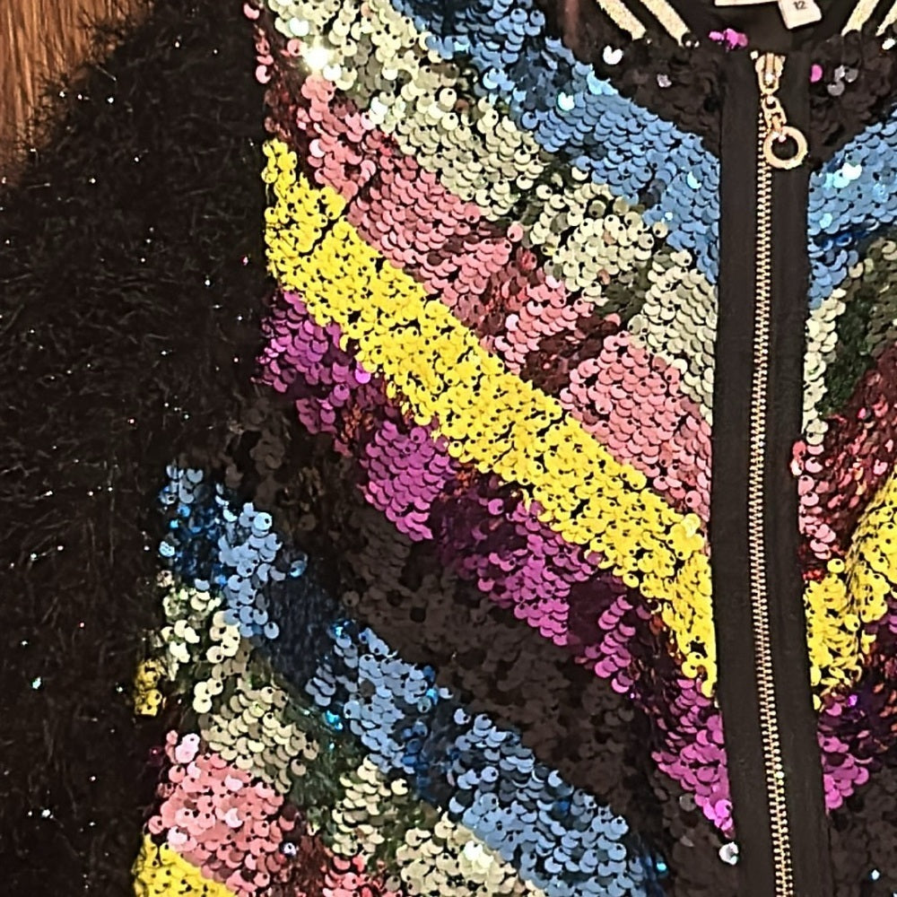 Hannah Banana Girls Rainbow Sequin Jacket With Black Sleeves, Size 12