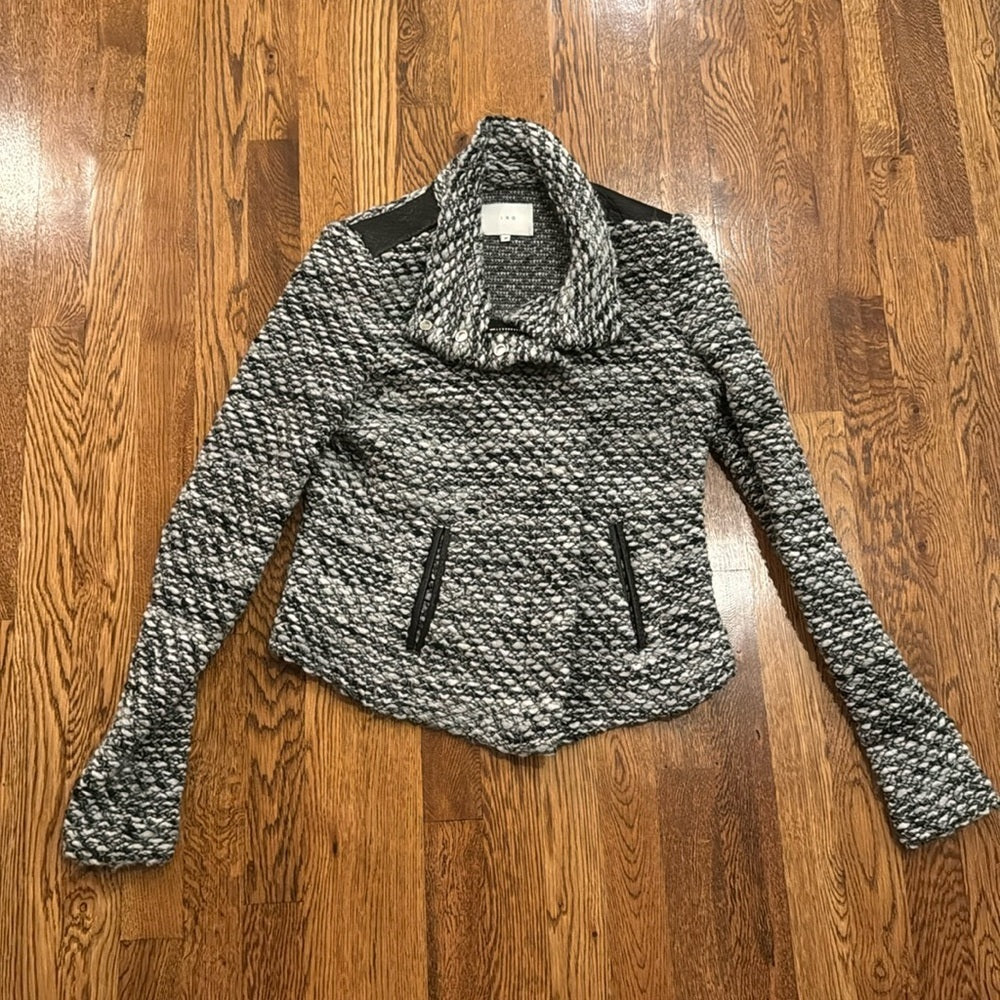 IRO Woman’s Black & White Cropped Tweed Cowl Neck Jacket Size 38 /Size 6