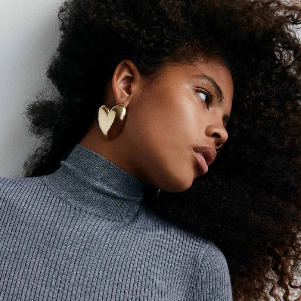Distinctly statement making in their size, yet incredibly easy to wear due to their hollow, carved out back. The puffy heart adds a hint of romance to your look. Wear them with a leather jacket for a surprising contrast or jeans and a tee shirt for an easy, statement making finishing touch. Features 14K gold posts for long lasting comfort.