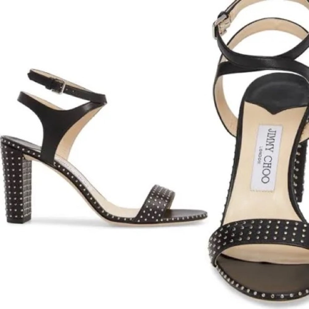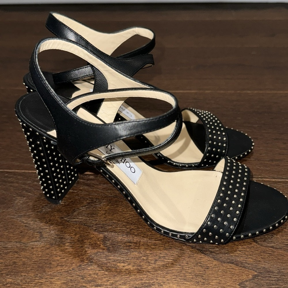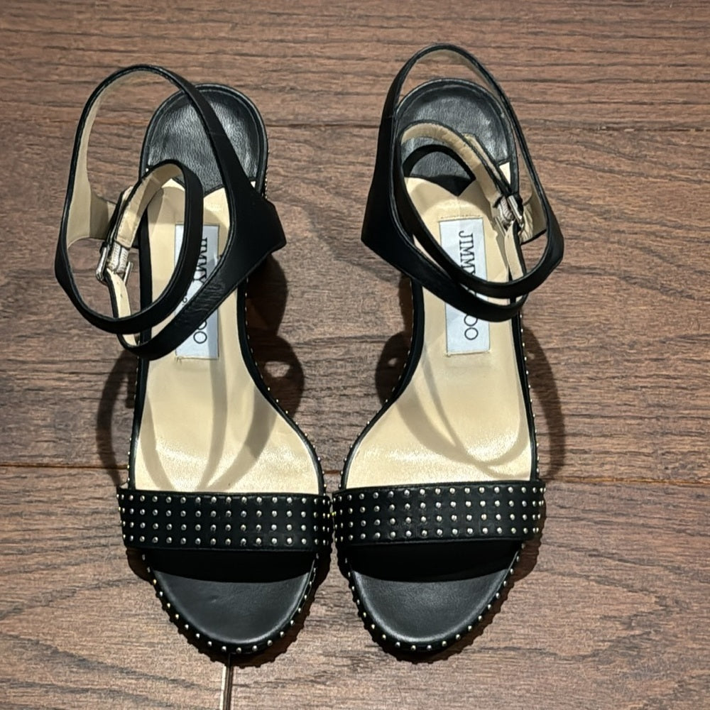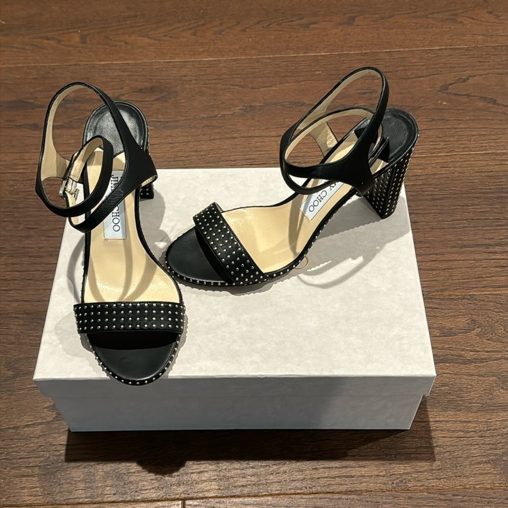 Jimmy Choo Marine Black Studded Sandals Size 37.5/7.5