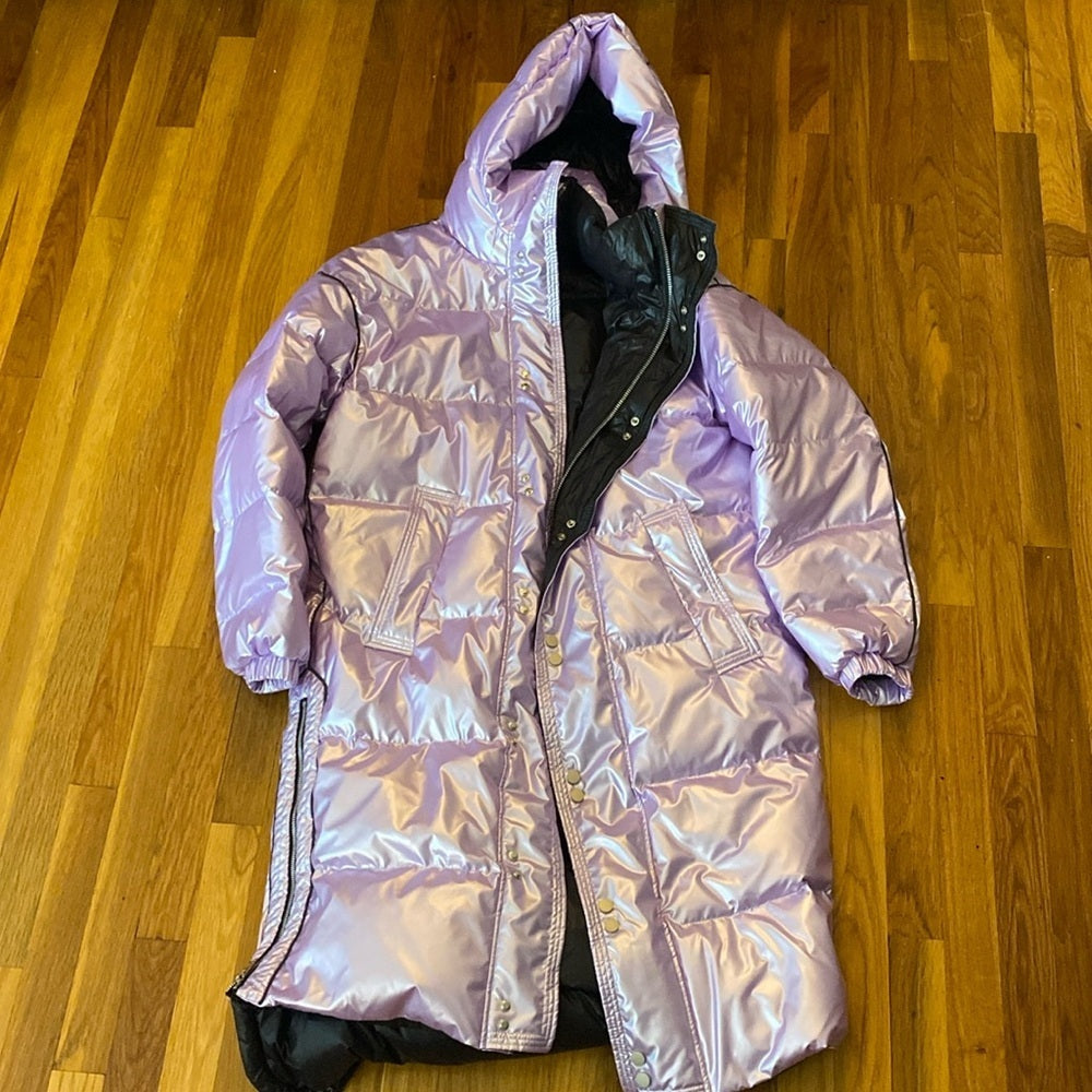 Lattelier Women’s Metallic Purple Long Puffer Jacket Size M