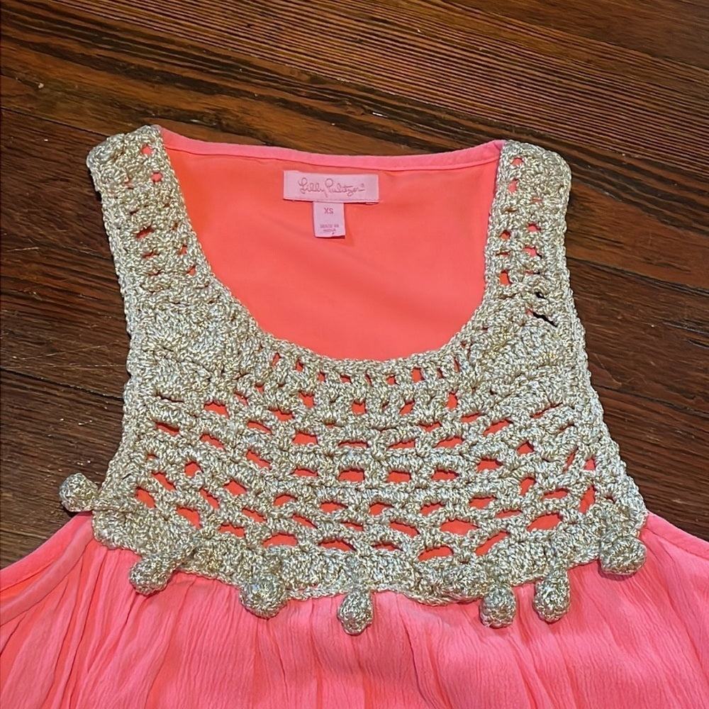 Lilly Pulitzer Women’s Coral Dress with Gold Crochet Detail Size XS