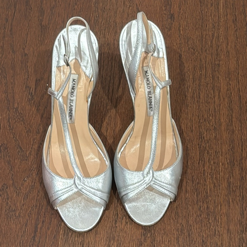 Manolo Blahnik Silver Dress Shoe Heels Size 40.5/10.5