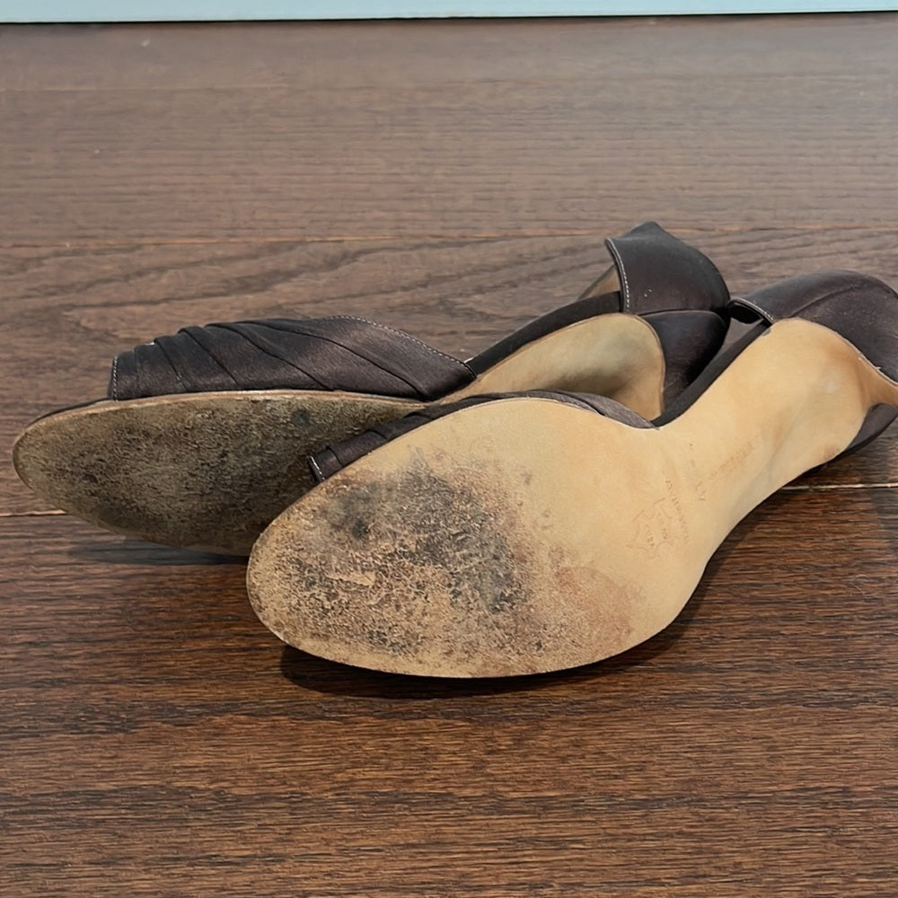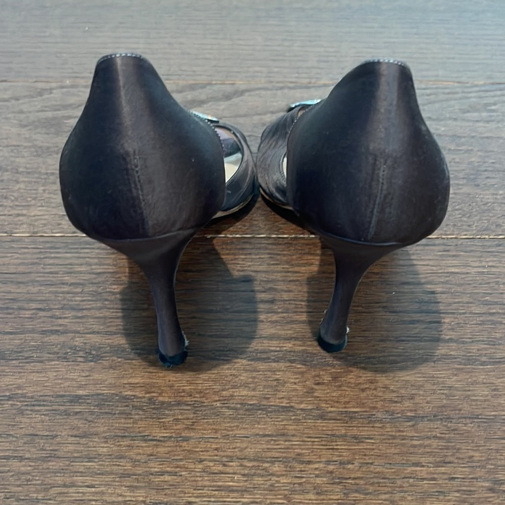 Manolo Blahnik Women Rhinestone Buckle Deep Eggplant Satin Dress Heel Size 41/11