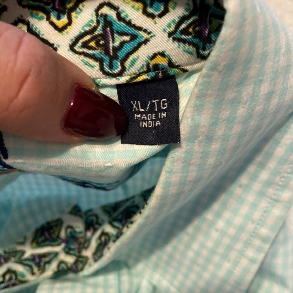 Men’s Robert Graham button down shirt. Light green/white. Size XL