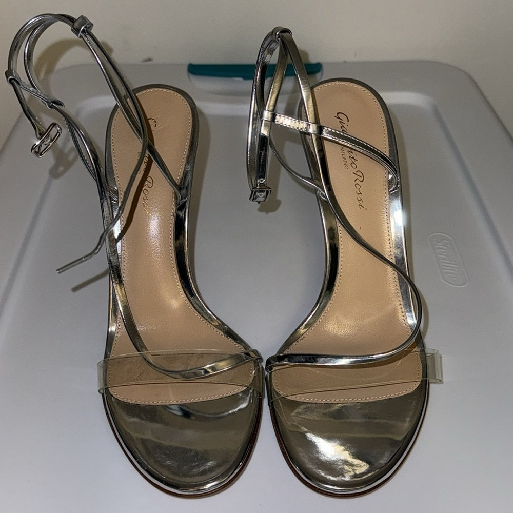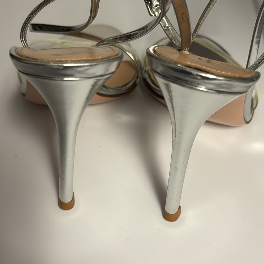 NWT Gianvito Rossi Silver and Clear Sandals Size 7
