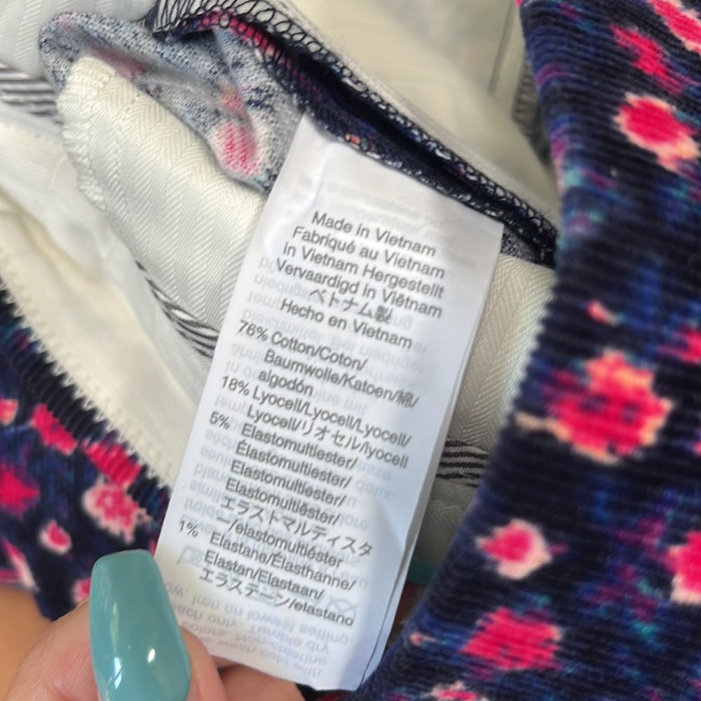 NWT J Crew Women’s Pink Printed Blue Corduroy Jeans Size 0