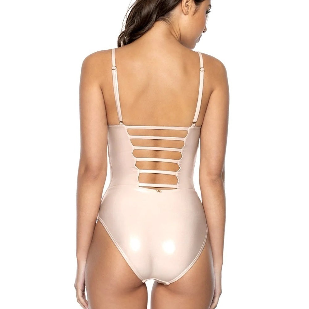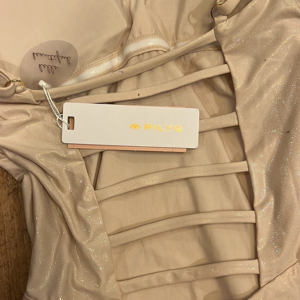 NWT Pilyq Women’s Pink Sparkly V-neck One Piece Size S