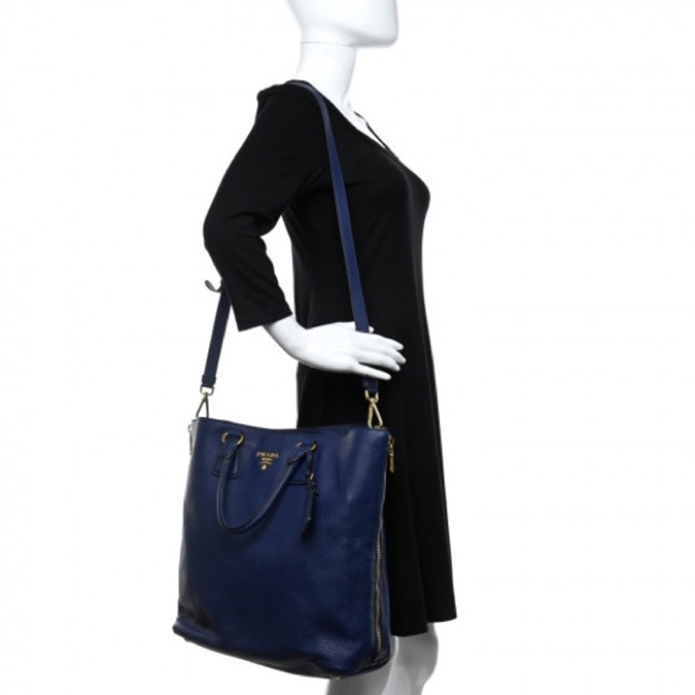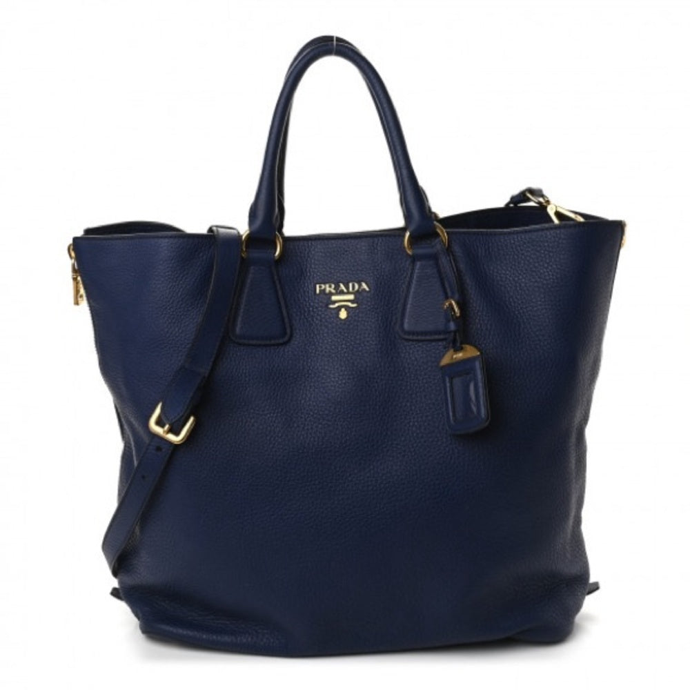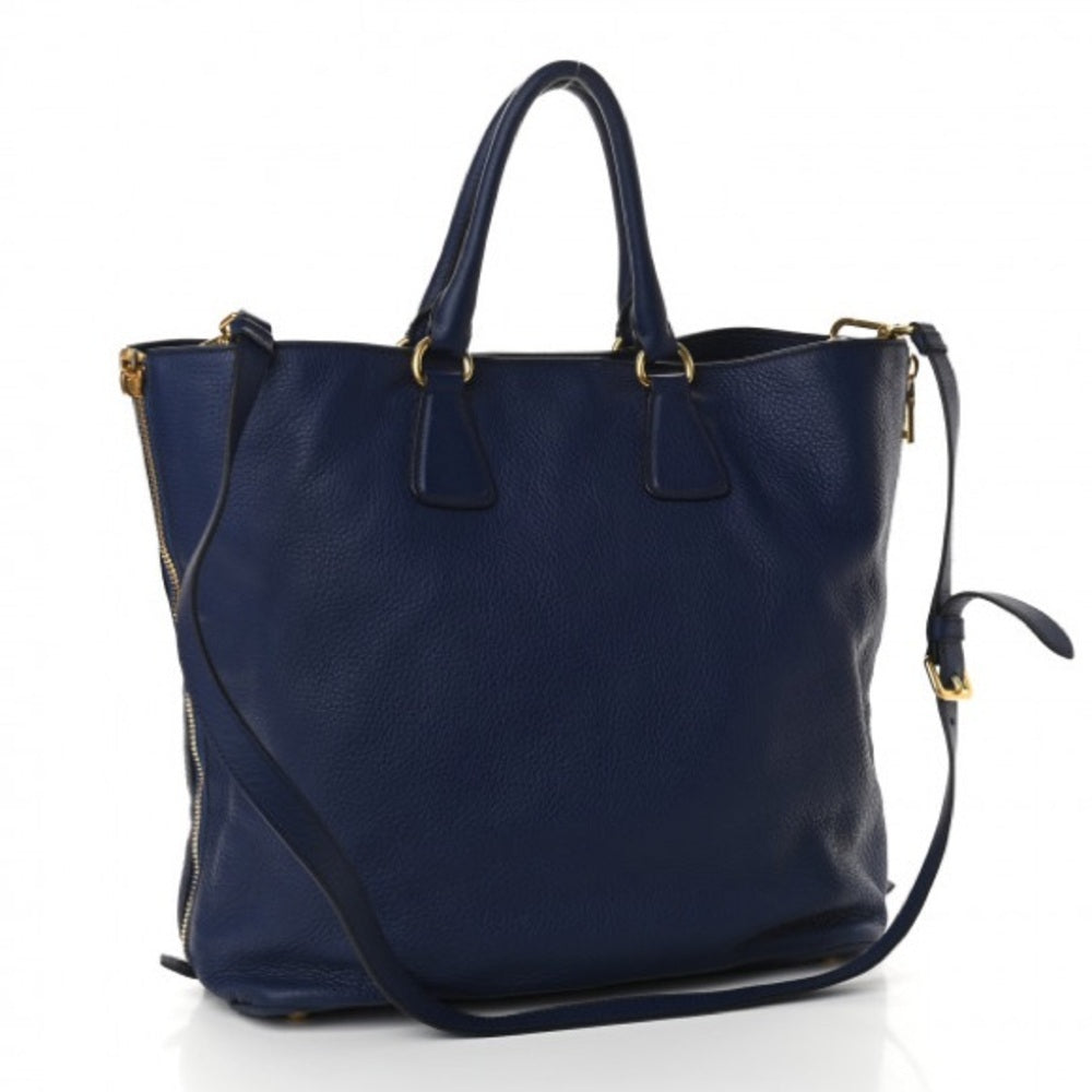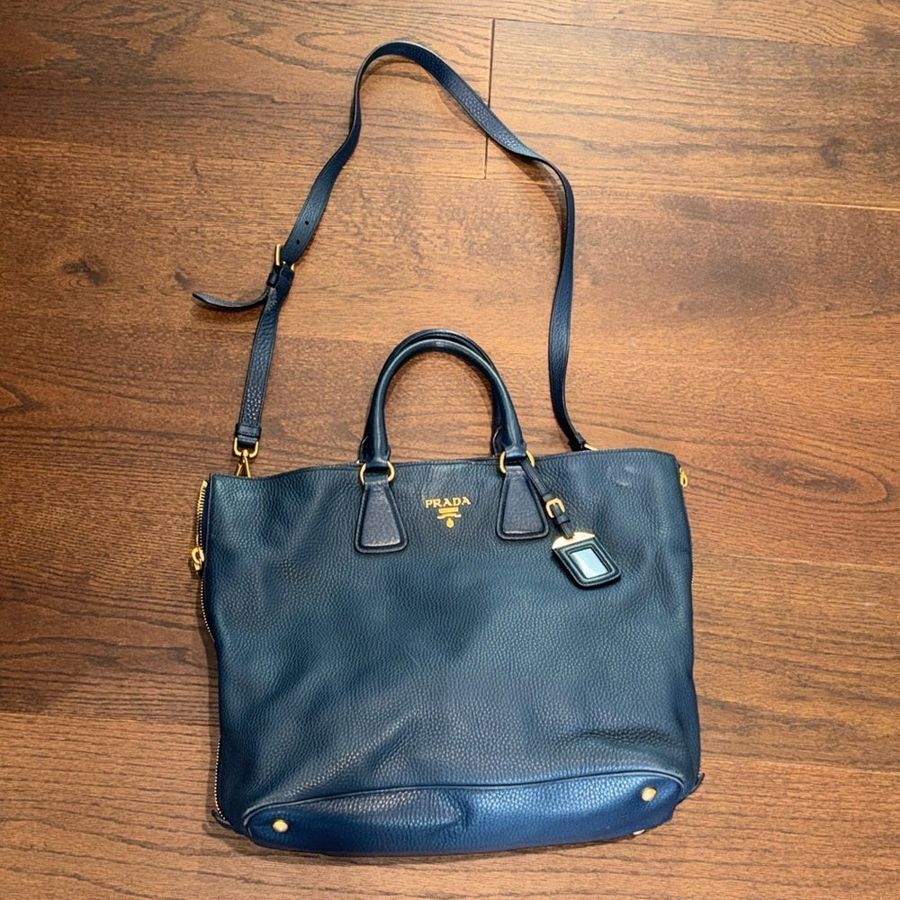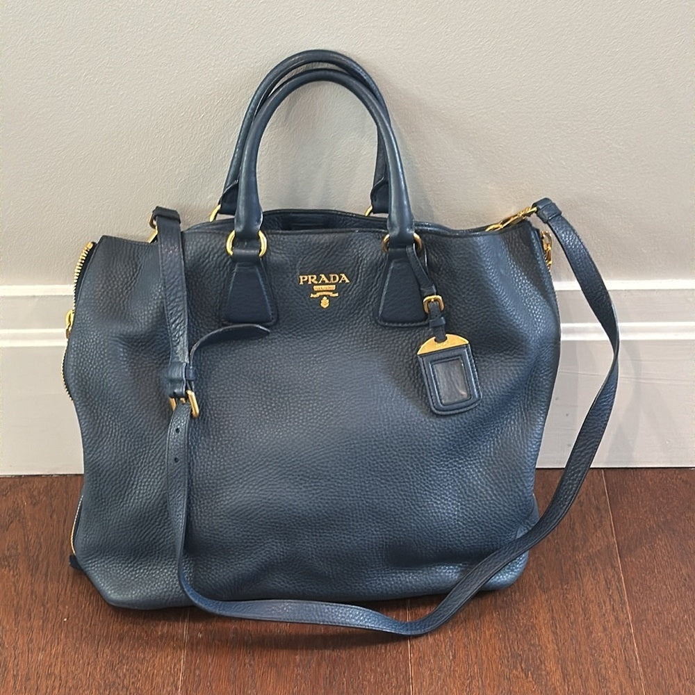 PRADA Vitello Daino Navy Tote Bag with Good Hardware