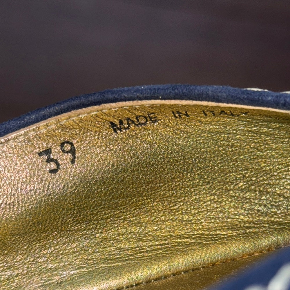 Prada Women’s Blue Suede Blue Espadrille Slip-On Peep Toe Shoes Size 39/9