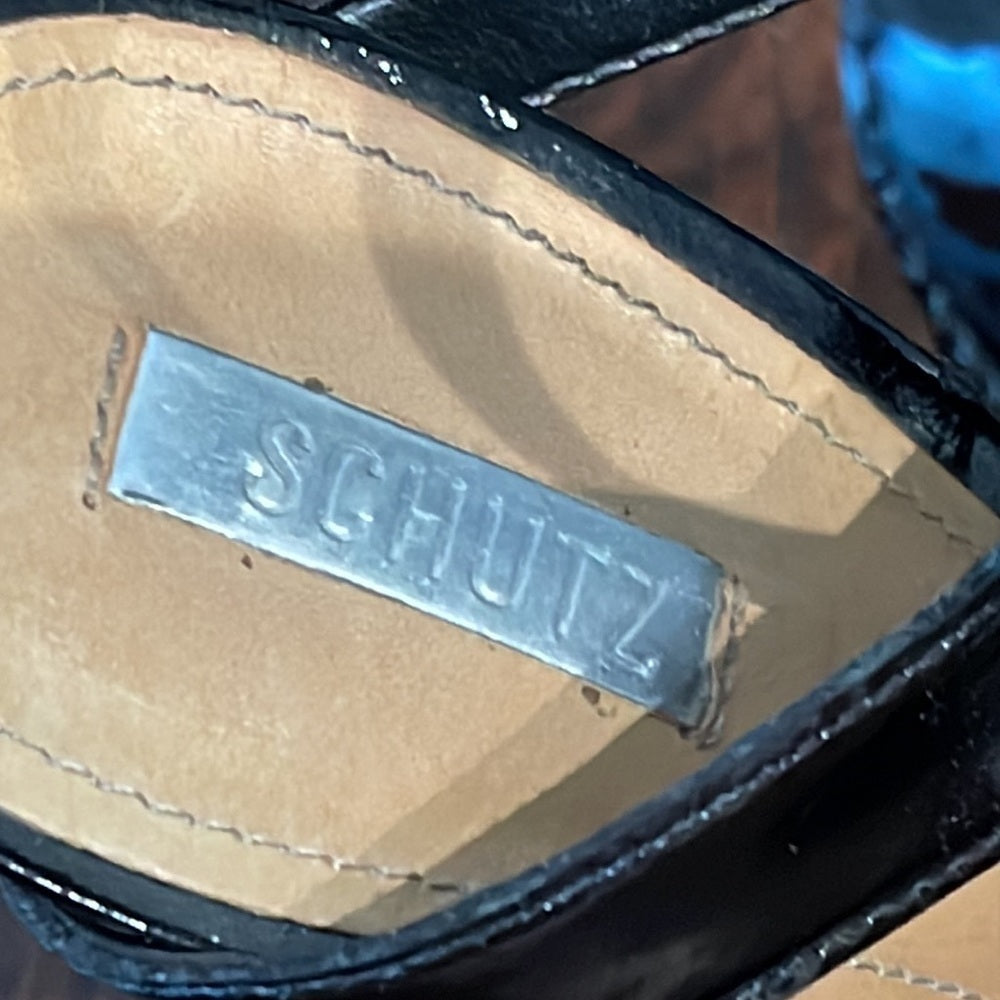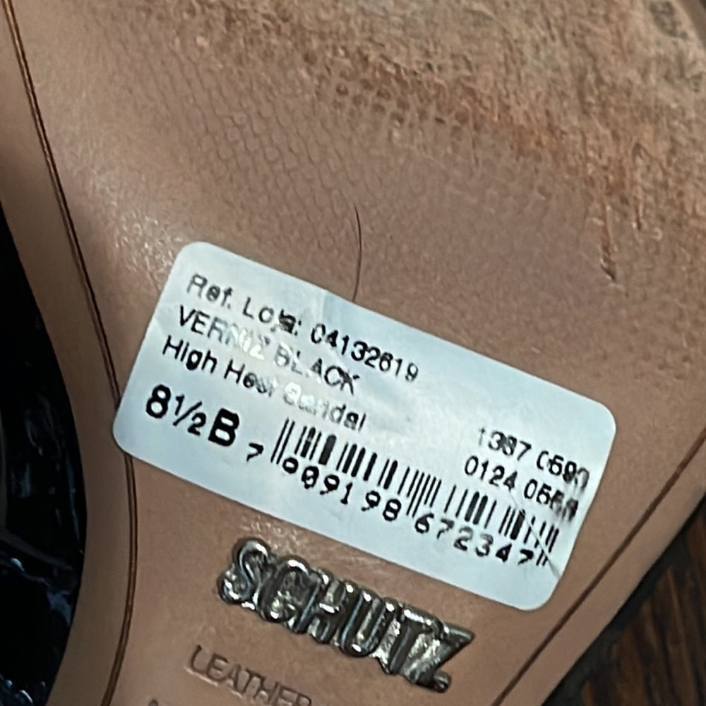 Schutz Black High Heel Patent Leather Sandals Size 8.5