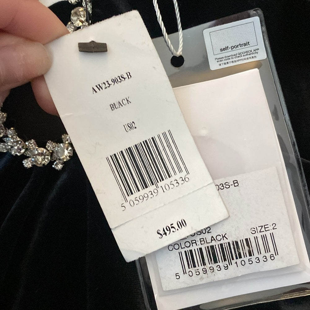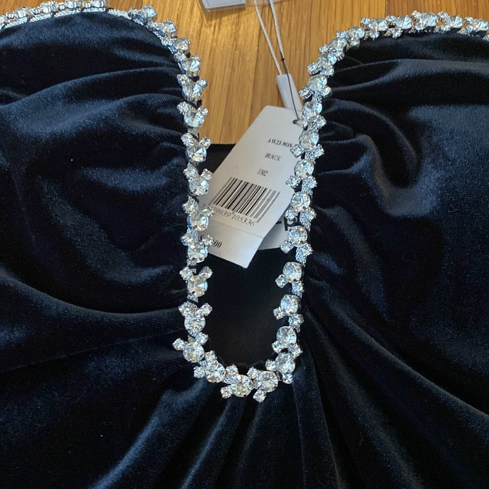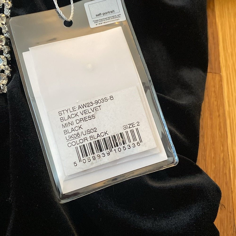 Self-Portrait Women’s Black Velvet Mini Dress With Rhinestone Detailing Size 2