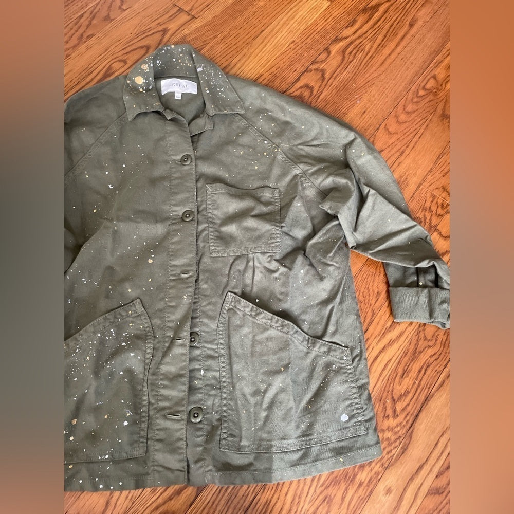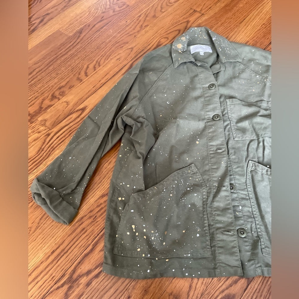 The GREAT. Green Splatter Paint Button Down Top Size 0