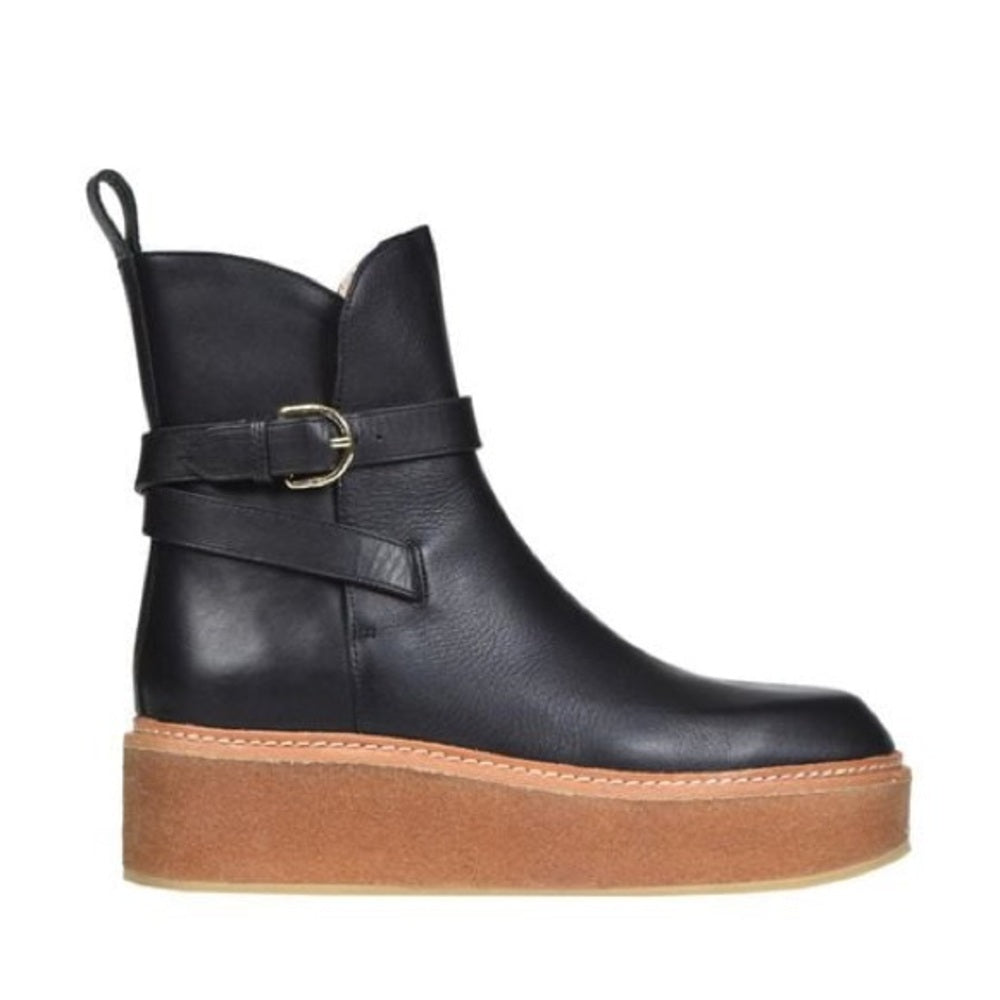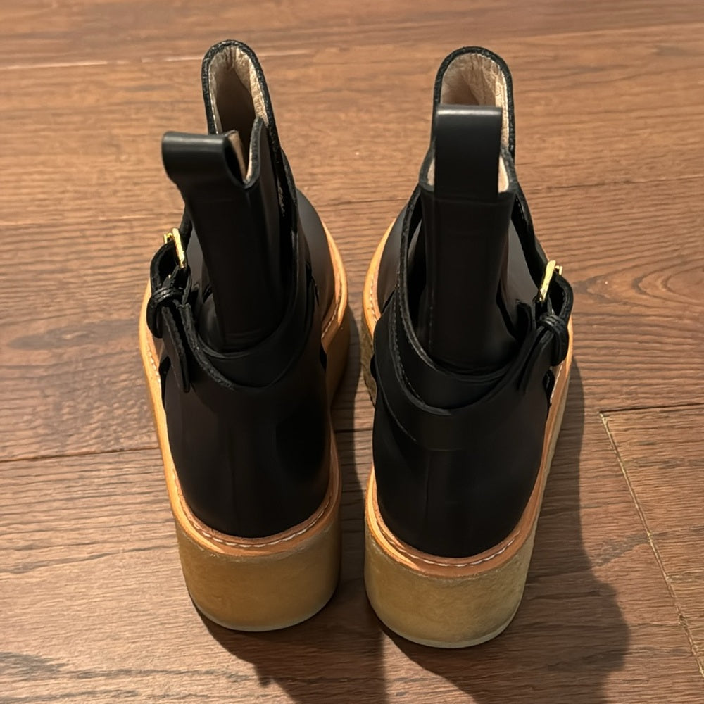 Ulla Johnson Lennox Flatform Black Leather Ankle Boots Size 37.5/7.5