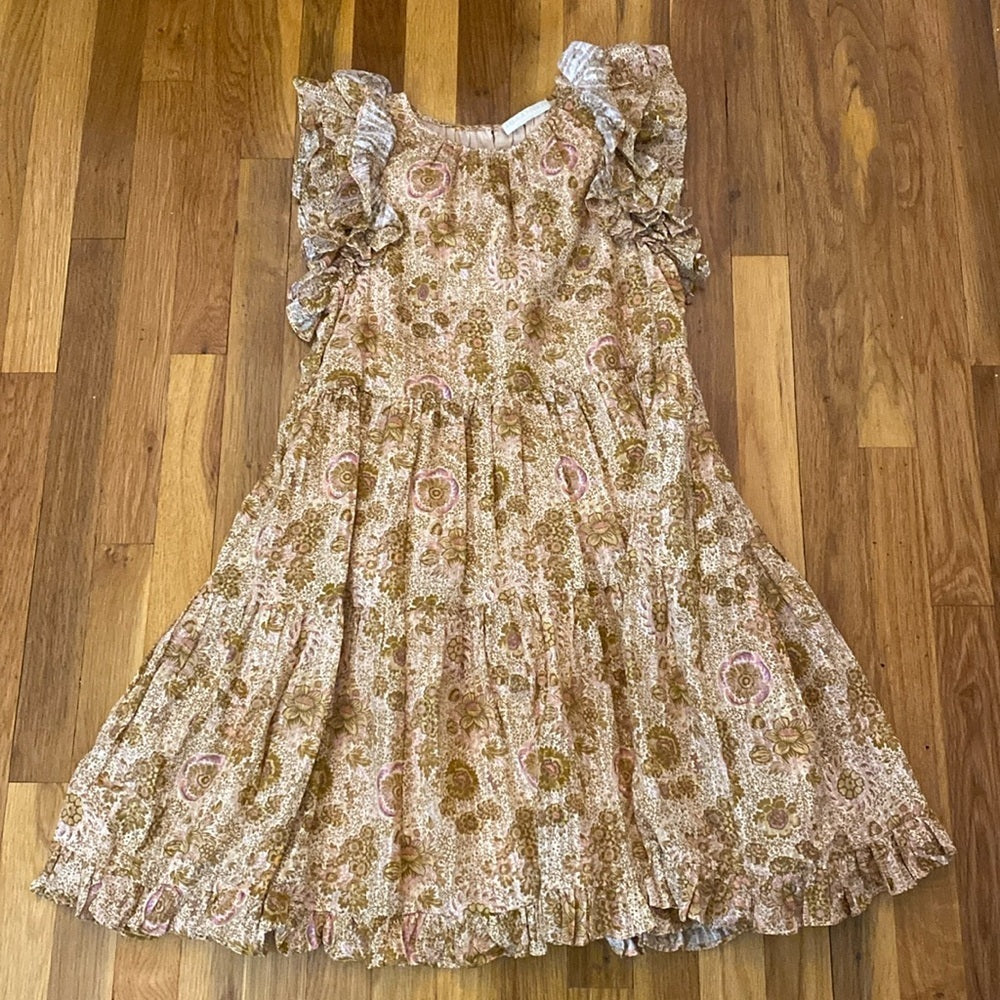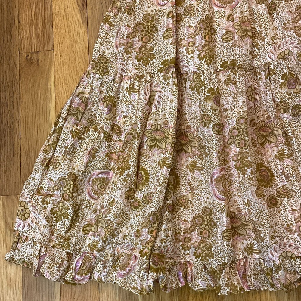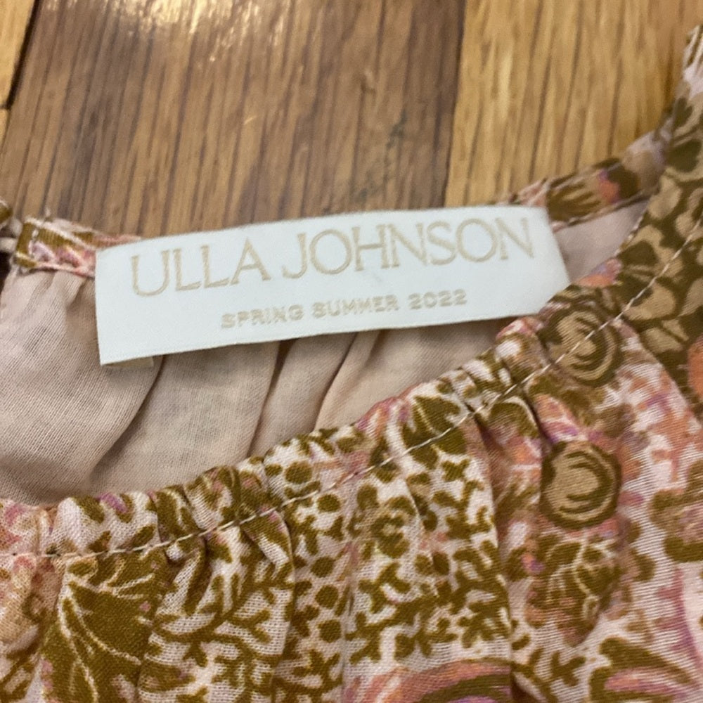 Ulla Johnson Women’s Tan and Pink Floral Print Dress With Ruffle Sleeves Size 2