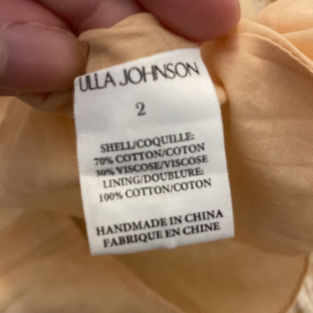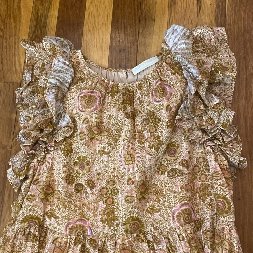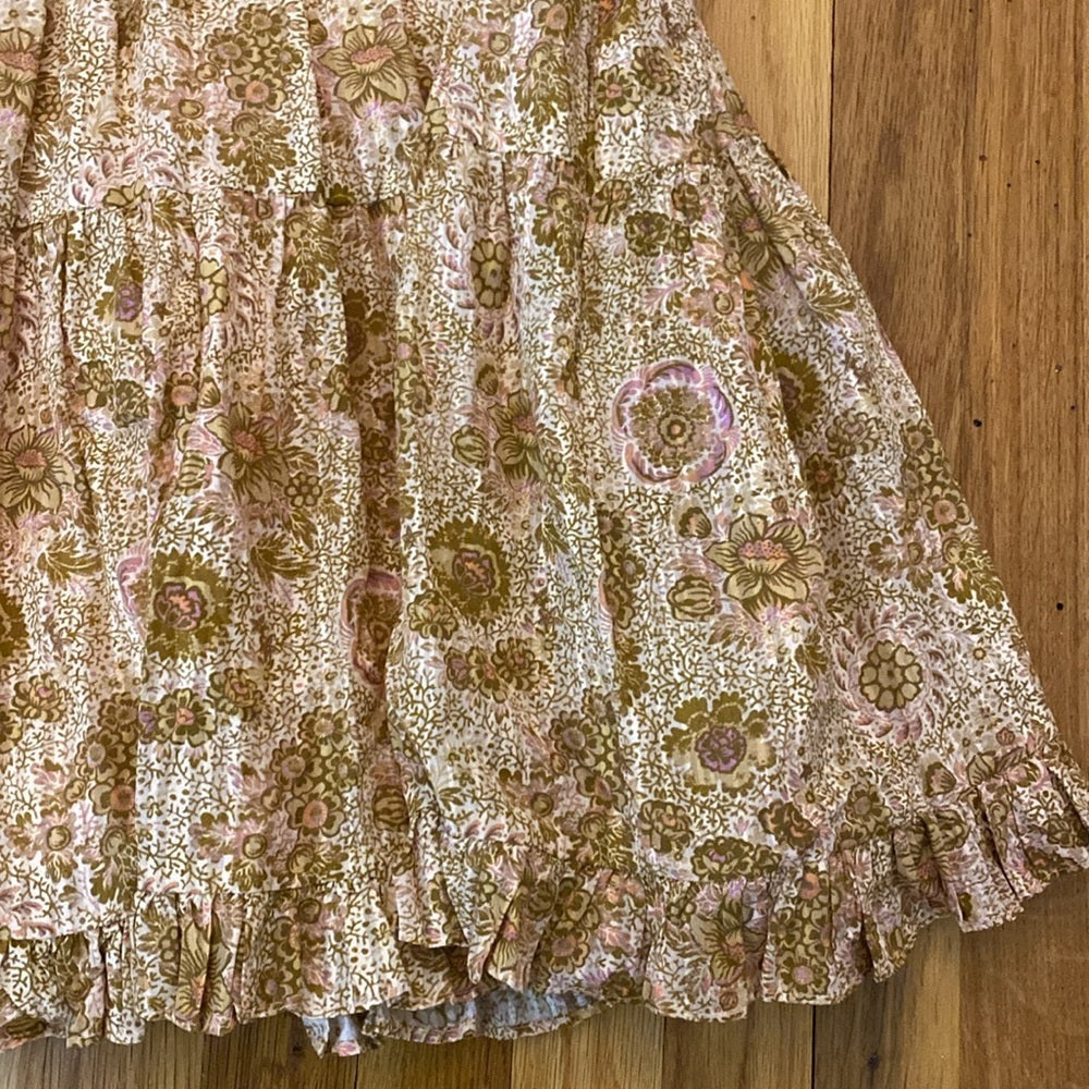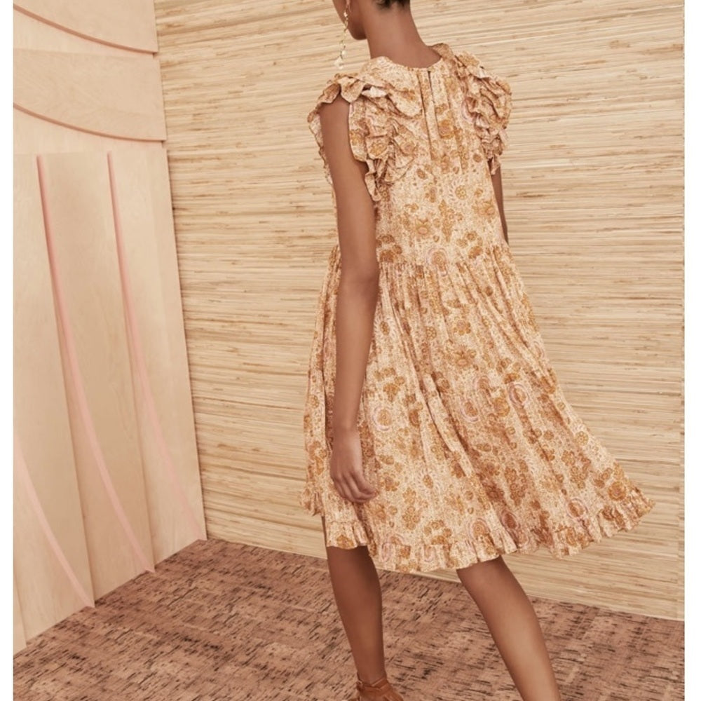Ulla Johnson Women’s Tan and Pink Floral Print Dress With Ruffle Sleeves Size 2