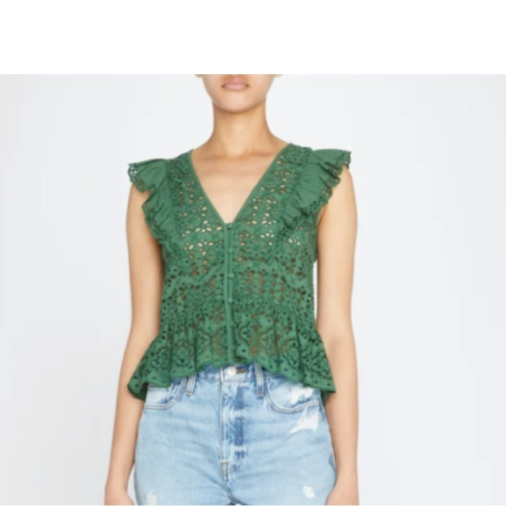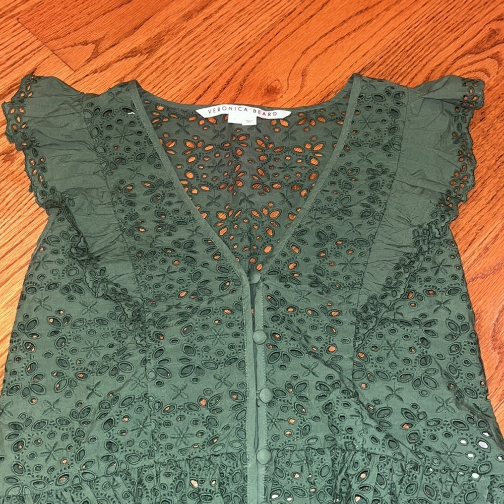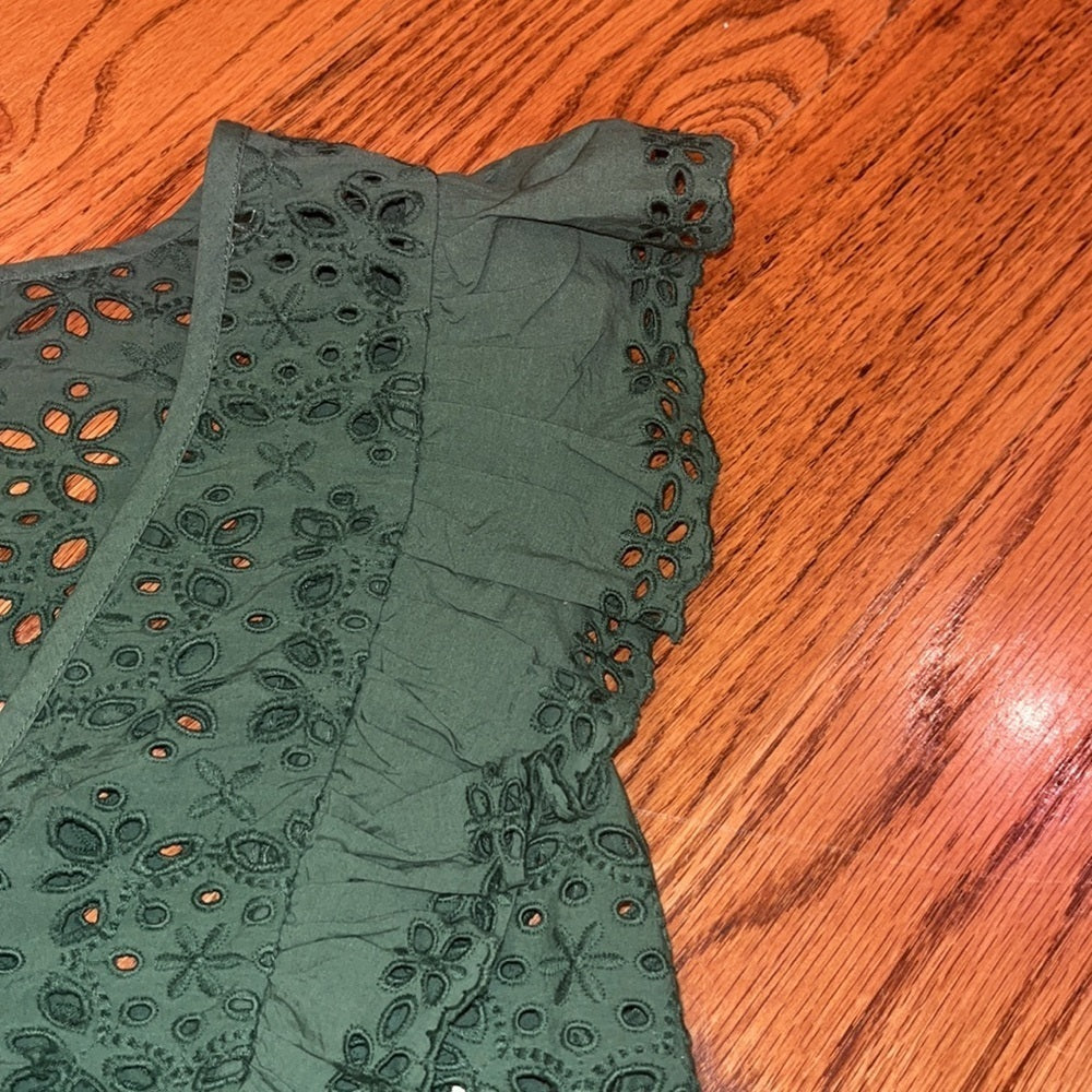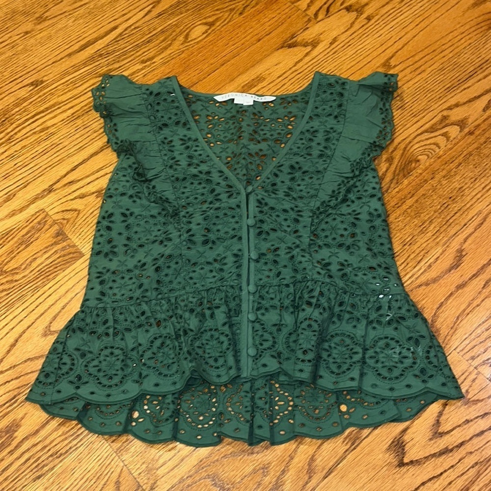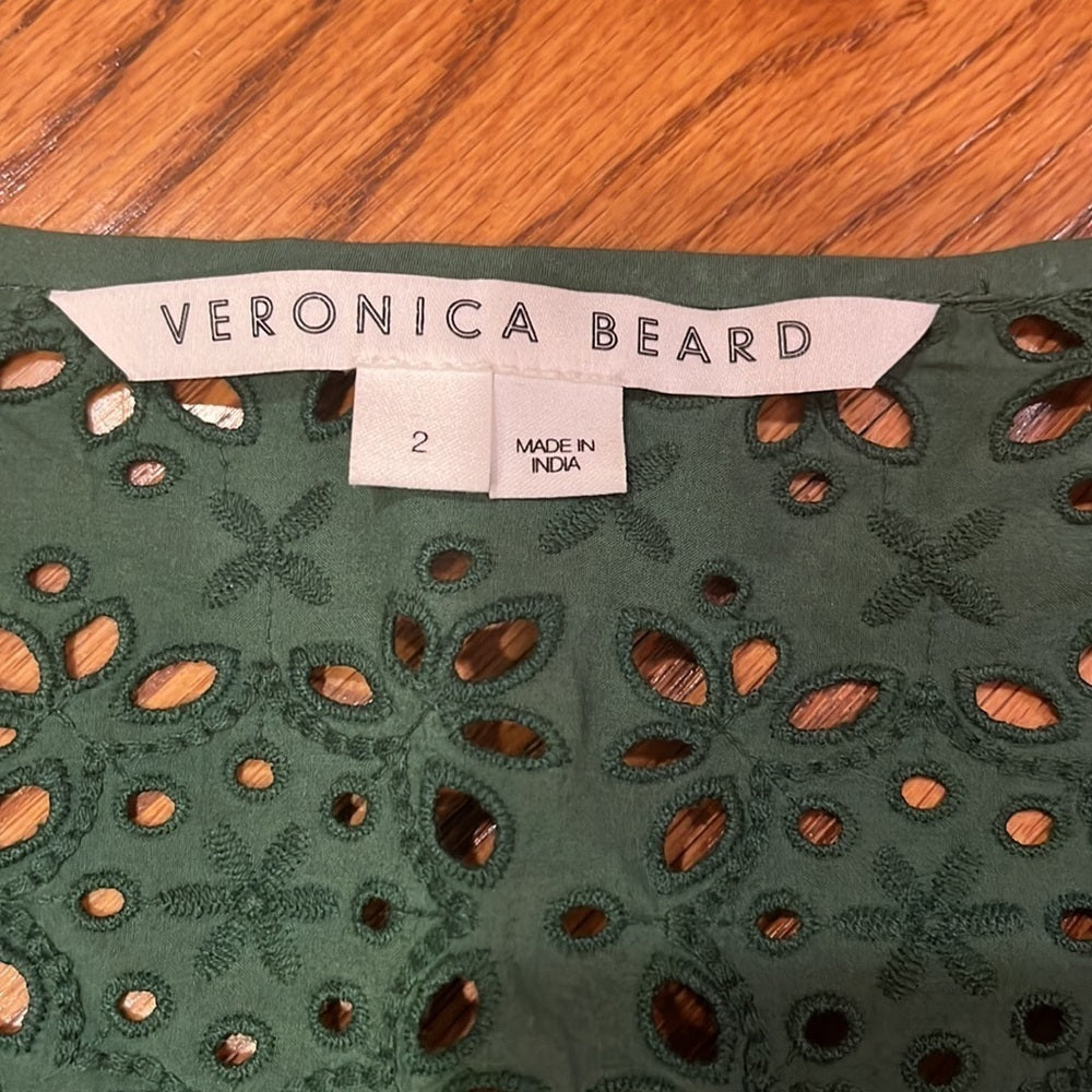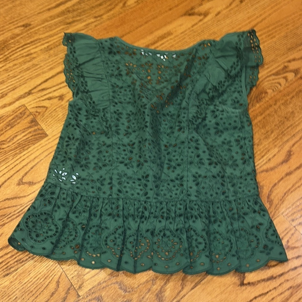 Veronica Beard Woman’s Araya Green Eyelet Ruffle Top Size 2