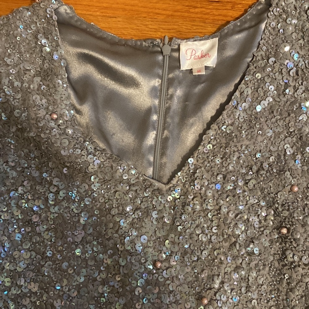 Women’s Parker Silver Sequins and Beaded dress Size Medium