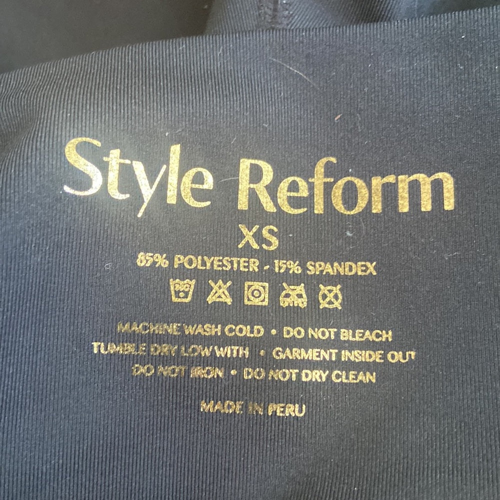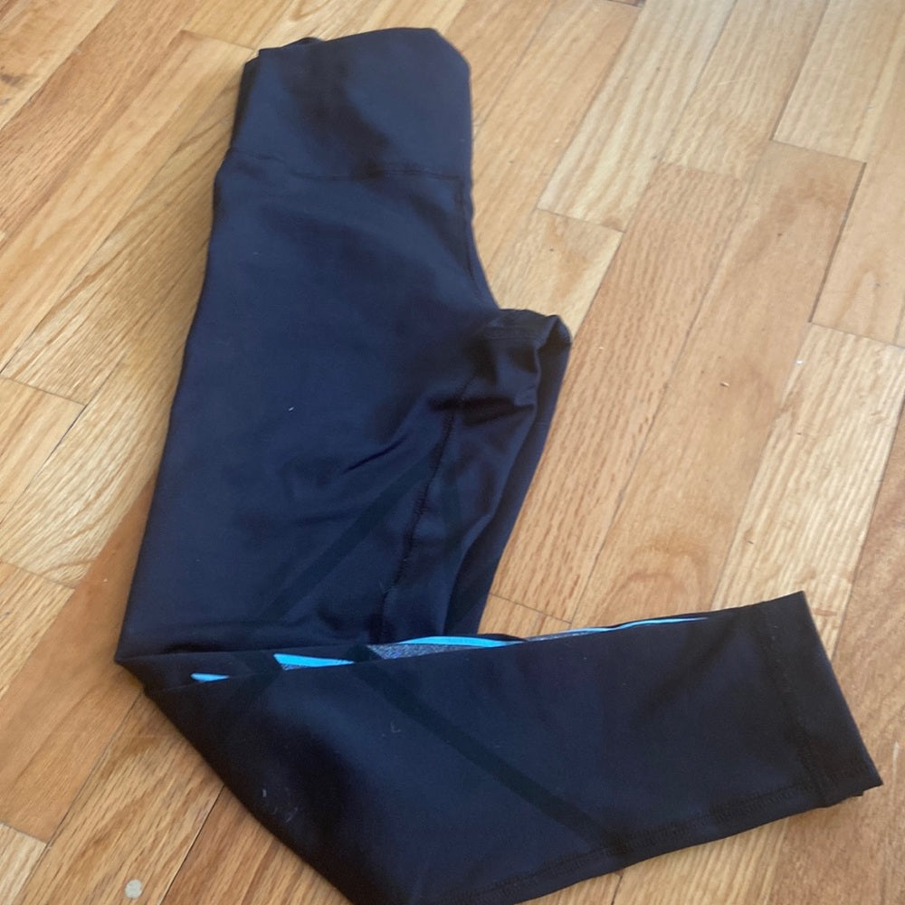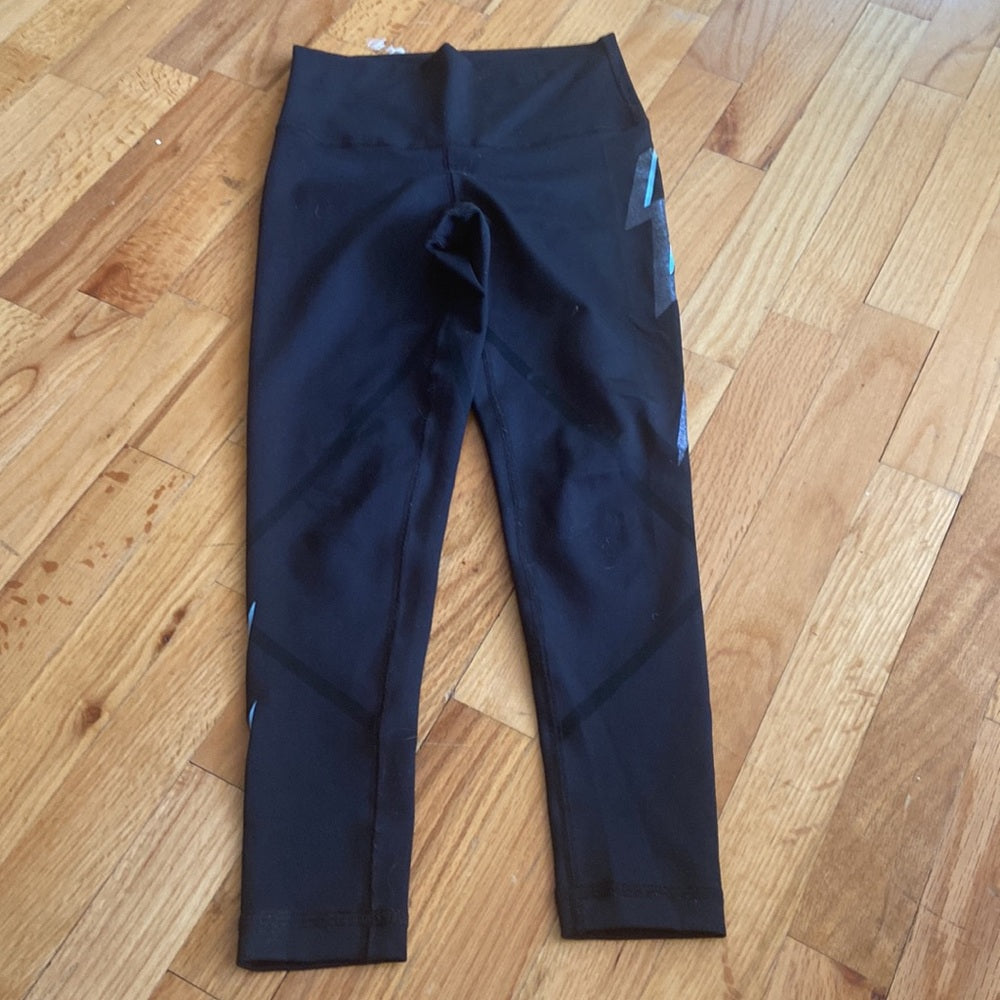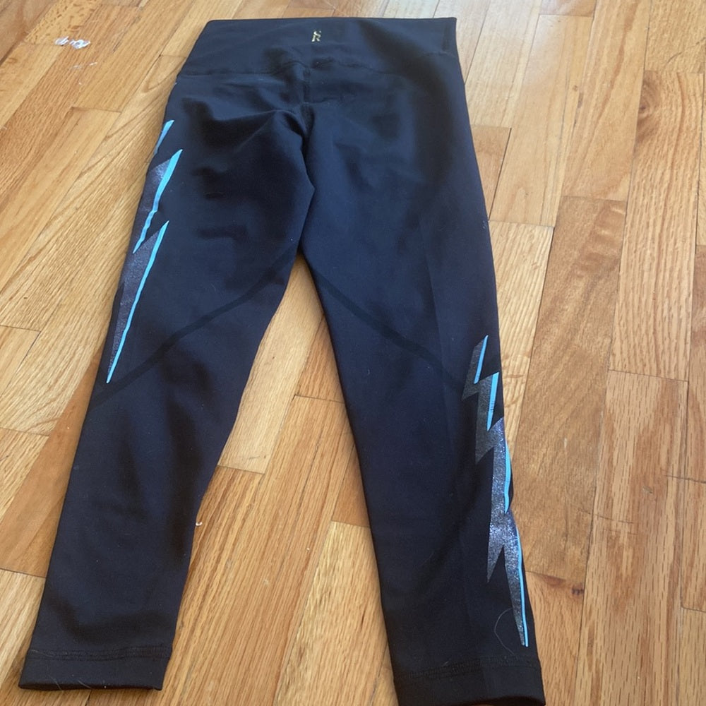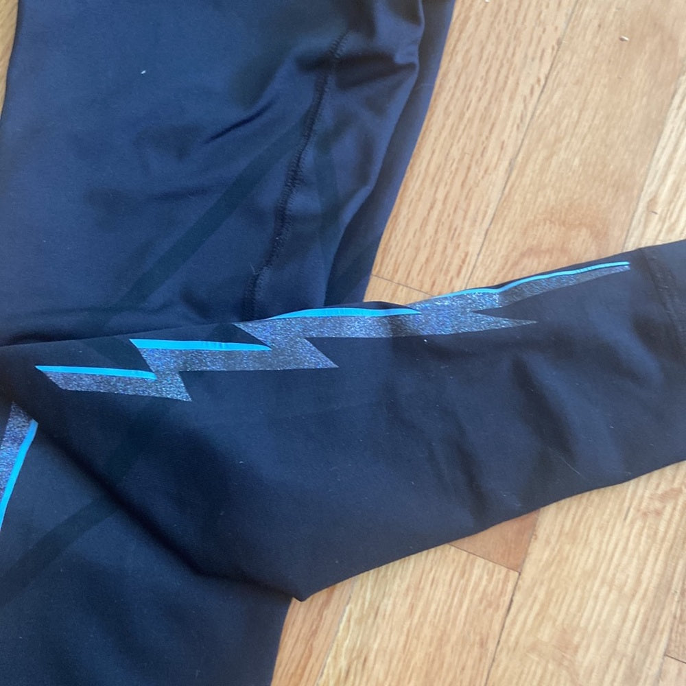 Women’s Style Reform leggings. Black with blue/silver. Size XS