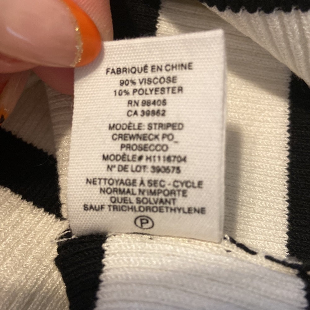 Black and white striped long sleeved top. Cuffed sleeves. Slit designs on bottom.
