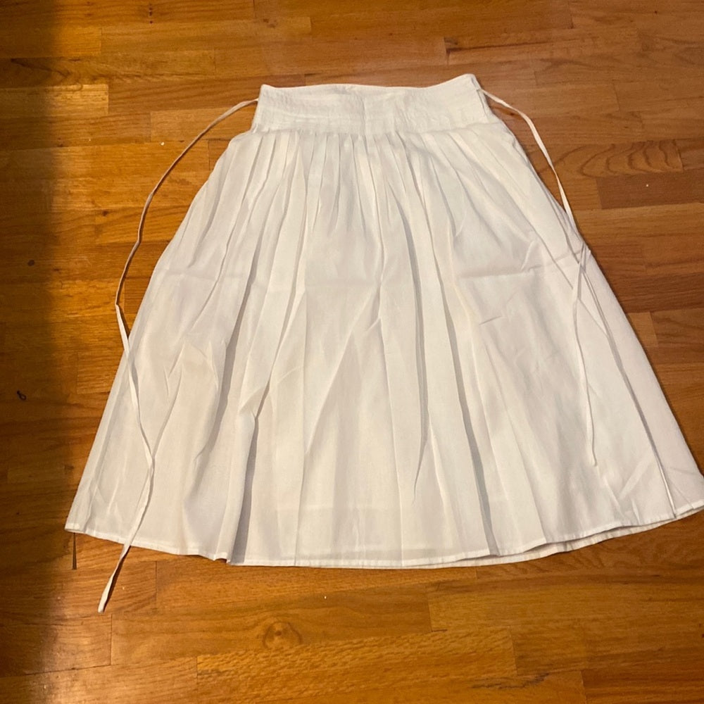 White skirt with waist ties.