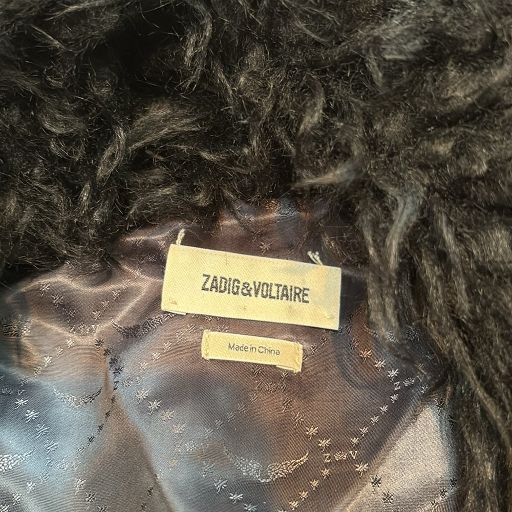 Zadig & Voltaire Woman’s Black Faux Fur Sleeveless Cardigan Size M